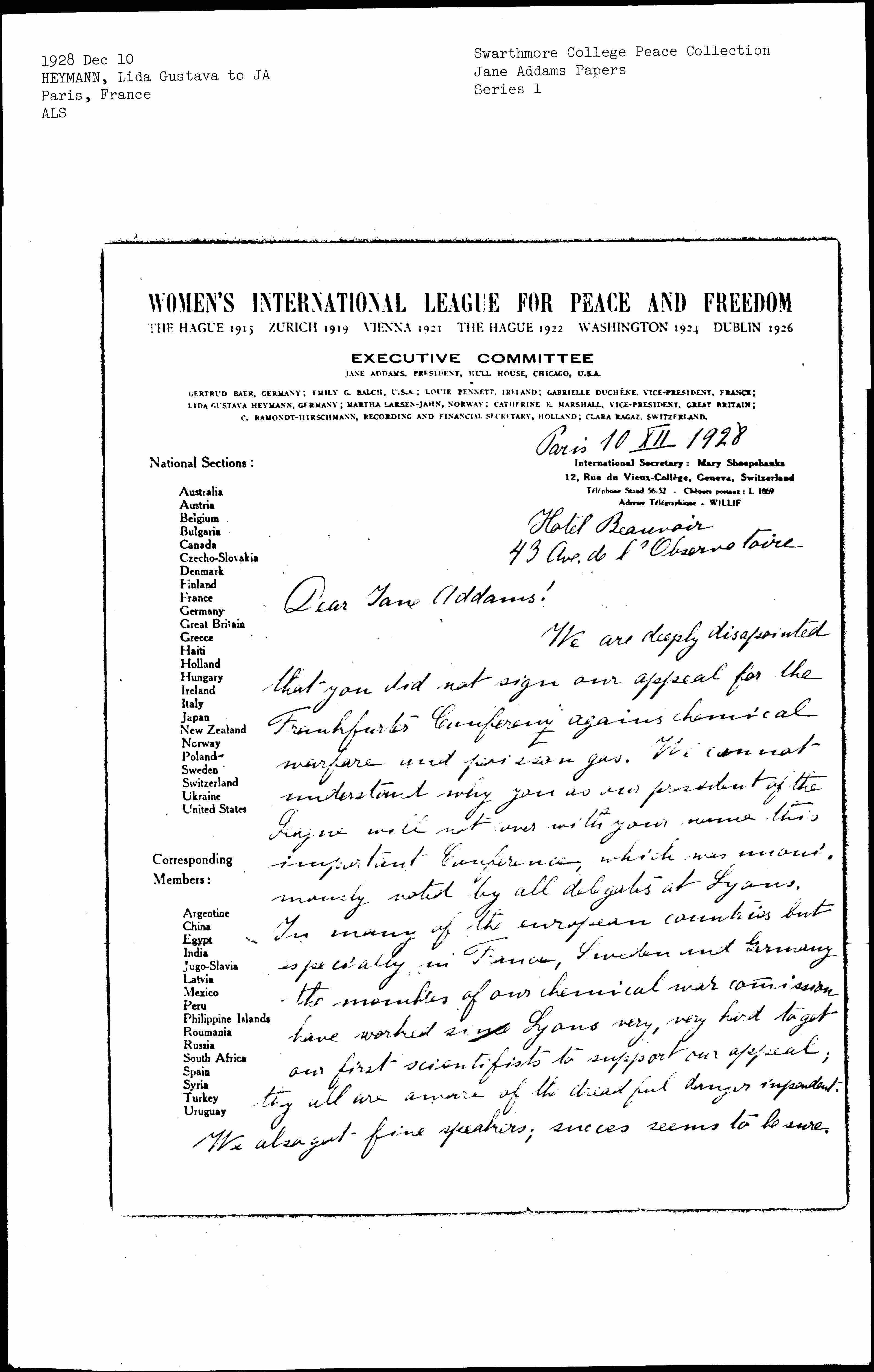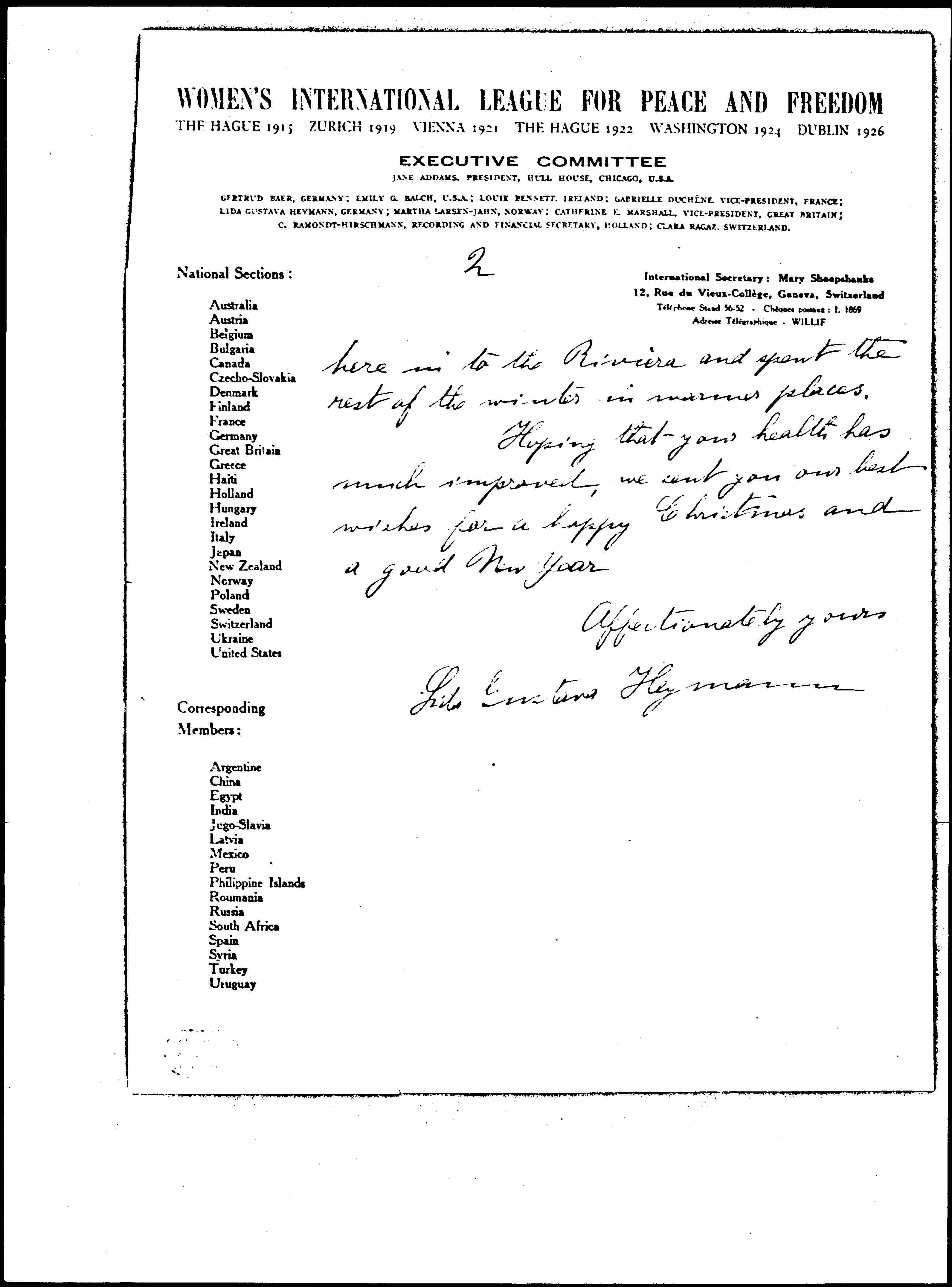 Lida Gustava Heymann to Jane Addams, December 10, 1928