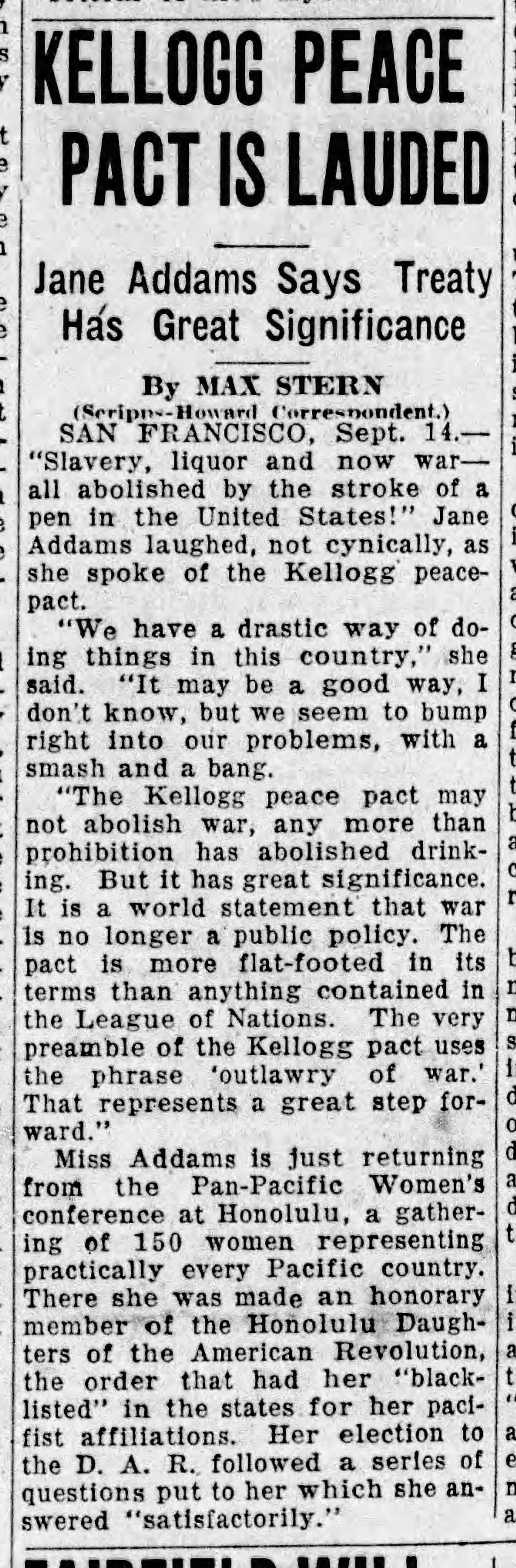 Statement on the Kellogg Peace Pact, September 14, 1928