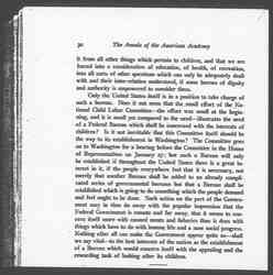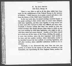 What does all this mean? Certainly two things. One is that these great questions of education and child labor cannot be adequately cared for by states whose boundaries are determined by rivers and mountains, and seem to have nothing to do with industrial problems, and that these problems therefore must be dealt with by a federal authority having power to transcend state lines. Secondly, that we cannot confine our attention to child labor and detach [page 3] it from all other things which pertain to children, and that we are forced into a consideration of education, of health, of recreation, into all sort of other questions which can only be adequately dealt with and their inter-relation understood, if some bureau of dignity and authority is empowered to consider them.