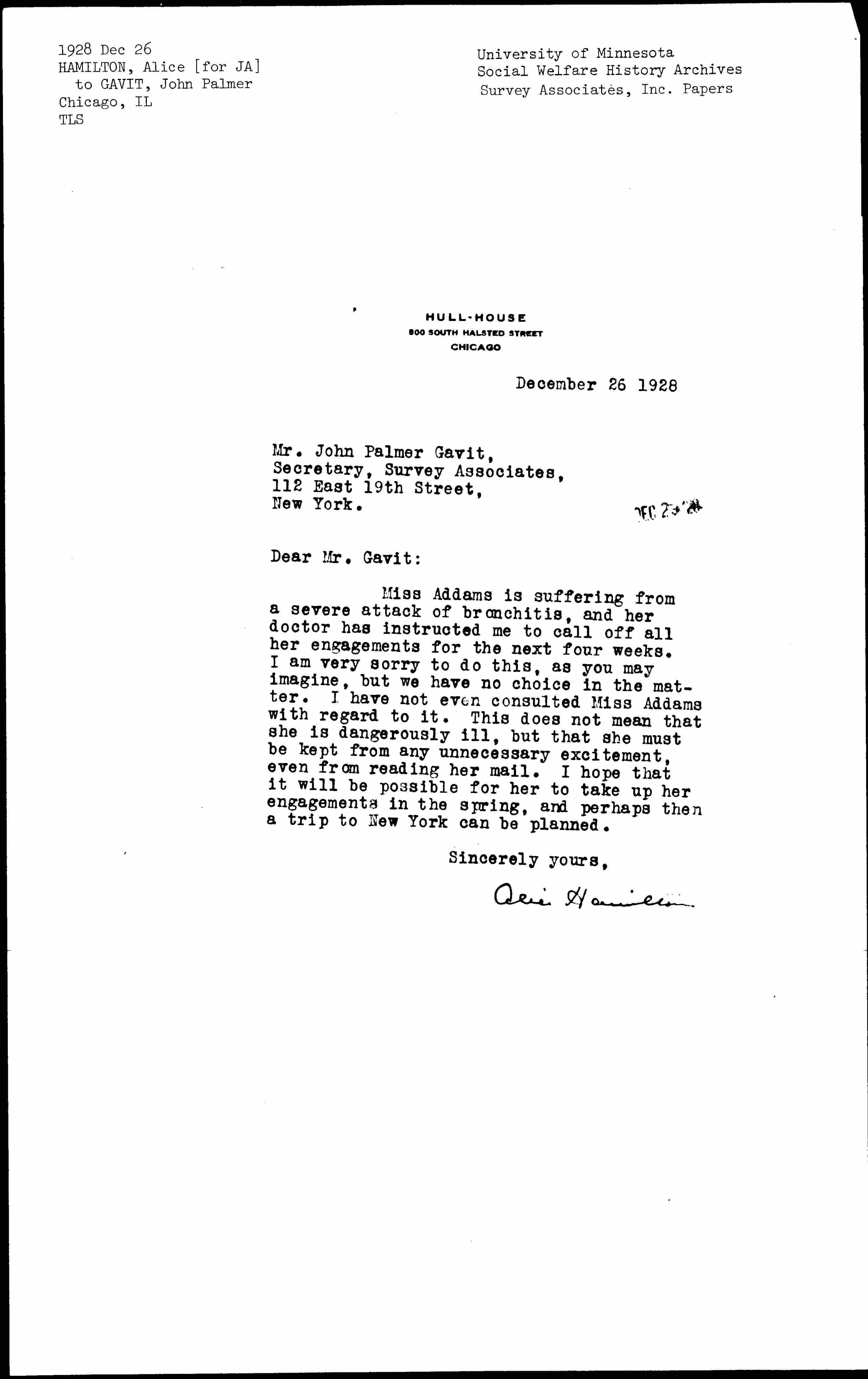 Alice Hamilton to John Palmer Gavit, December 26, 1928