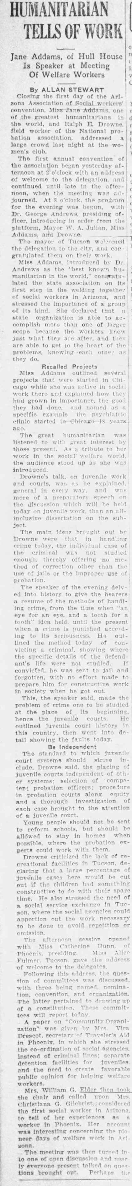 Speech to the Arizona Association of Social Workers, February 15, 1929 (summary)