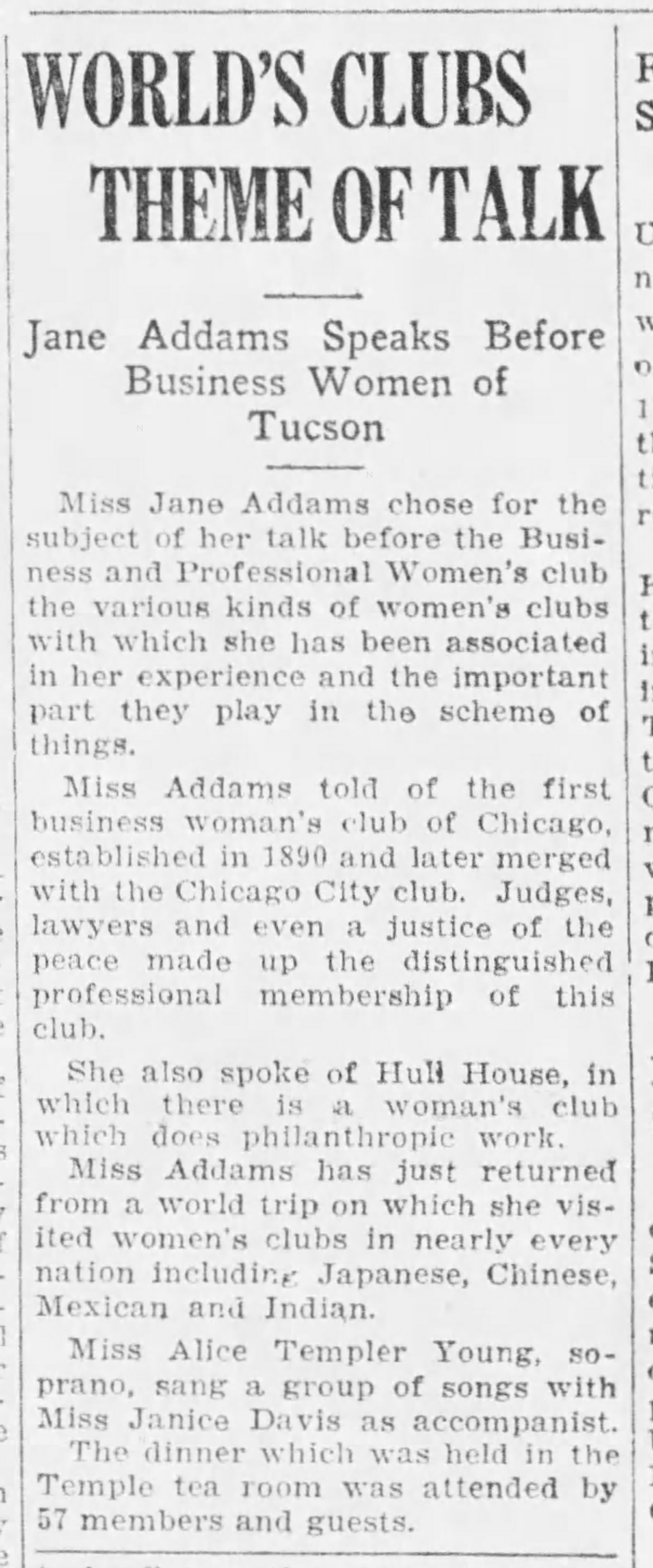 Speech to the Tucson Business and Professional Women's Club, March 2, 1929 (summary)