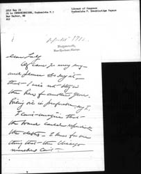 I can't imagine that the board could repudiate the debts. I know for one thing that the Chicago members can't. [page 2] I will write to Miss Blackwell, I had no idea she felt that we weren't ""[wid?]" her.