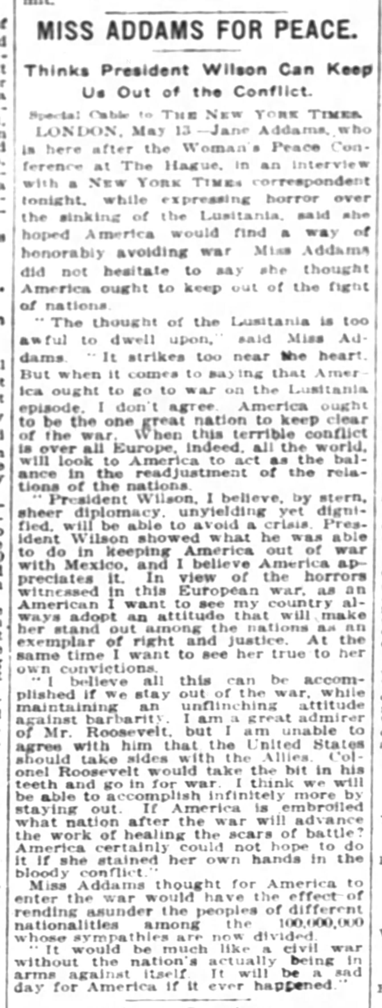 Interview with New York Times, May 14, 1915