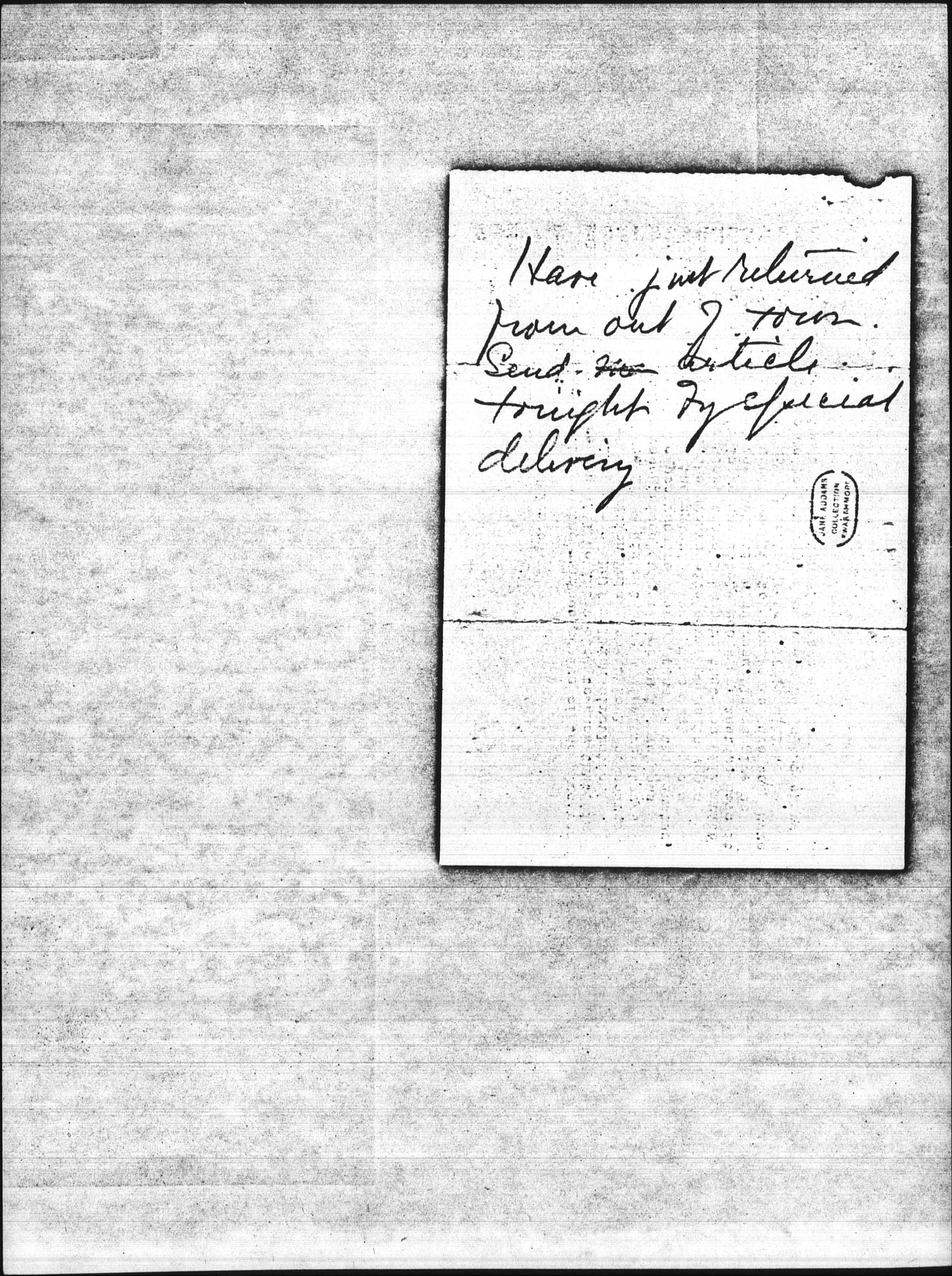 Have just returned from out of town. Send me article tonight by special delivery