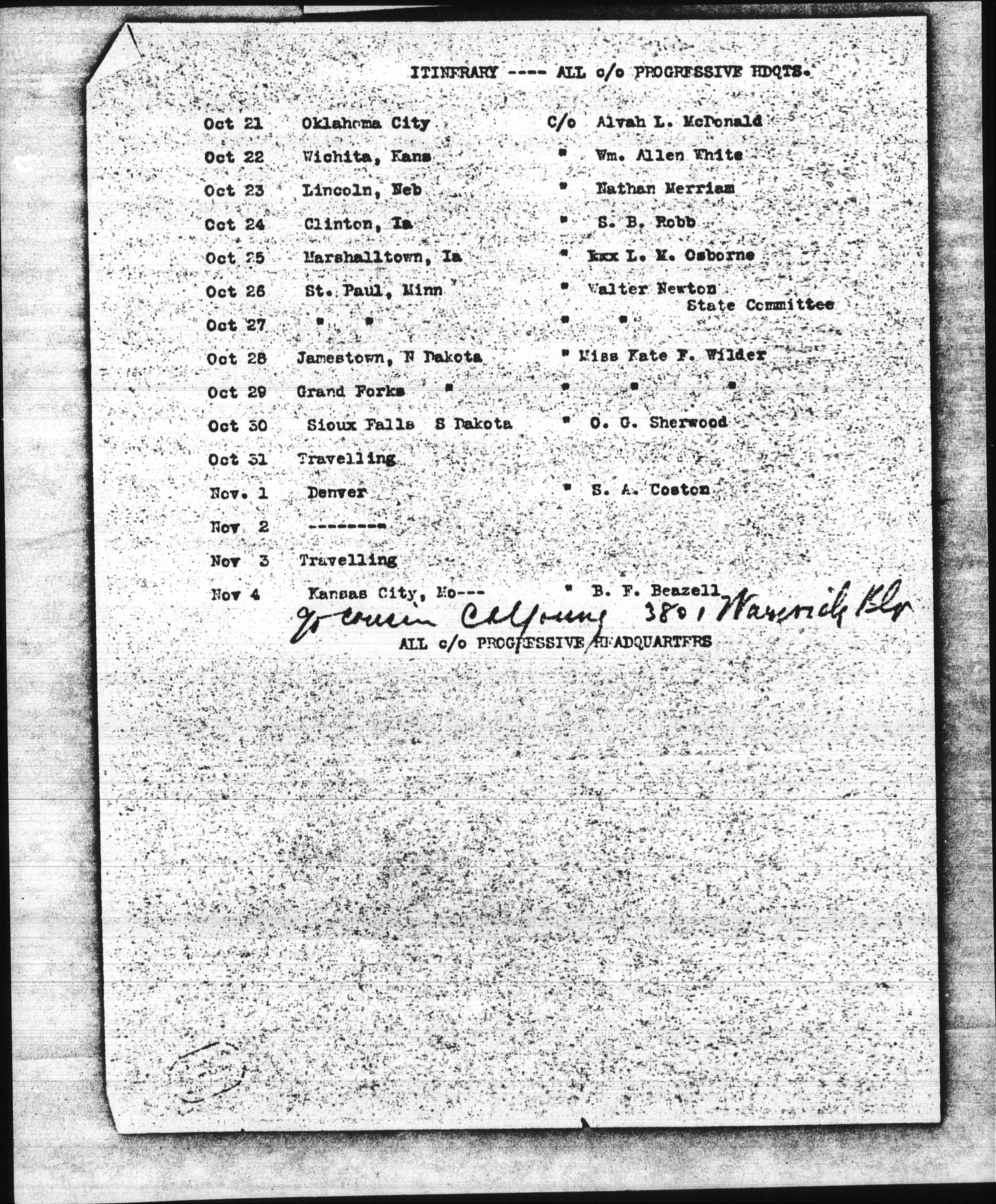 Oct 27 [St. Paul, Minn c/o Walter Newton State Committee]
