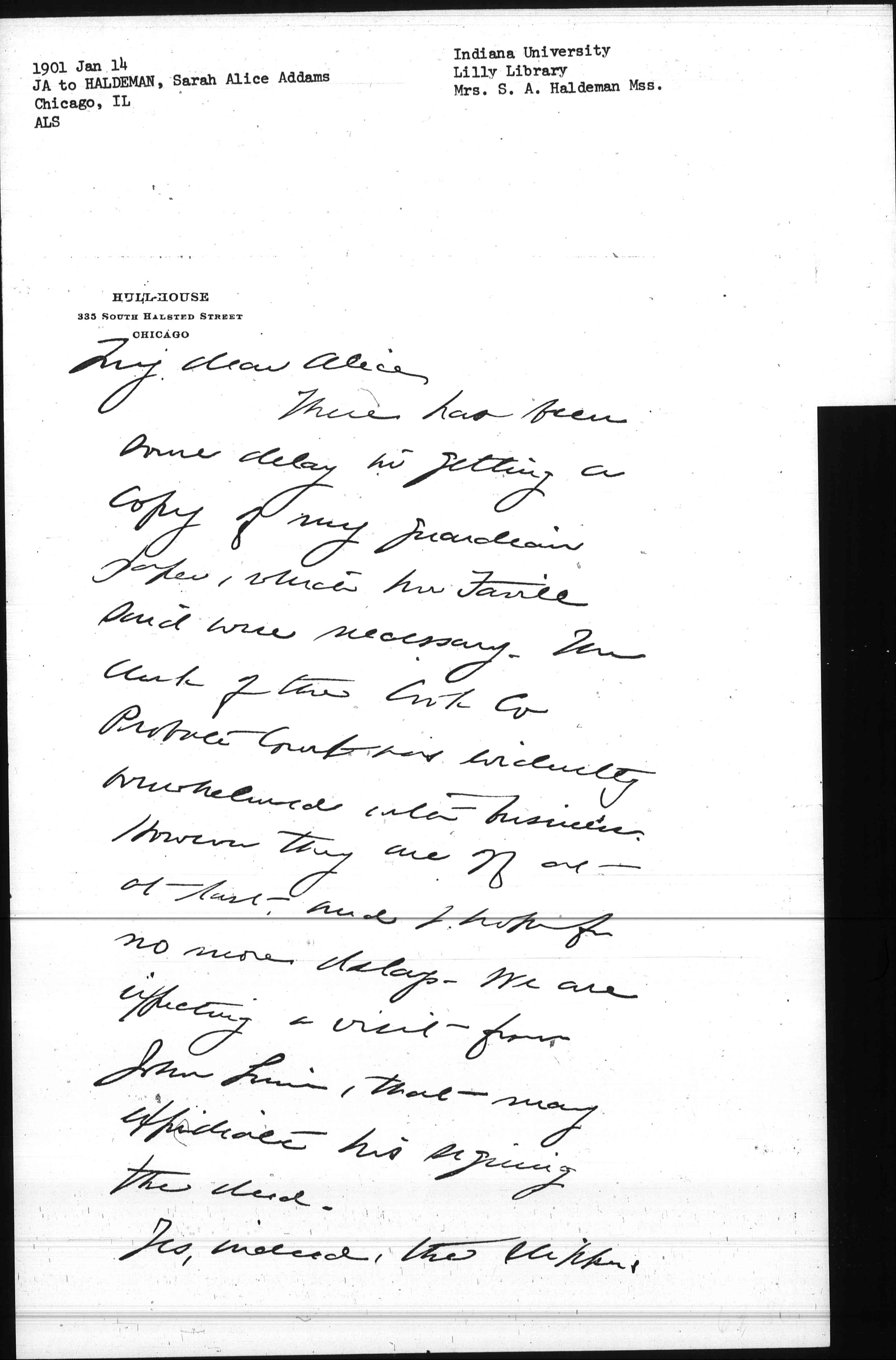 Yes, indeed, the [slippers] [page 2] came and I am most grateful for them. The Christmas season at H.H. gets pretty intense, so many of the residents go home so that those who are left have little time for visiting. With love to Marcet always your loving sister. Jane Addams