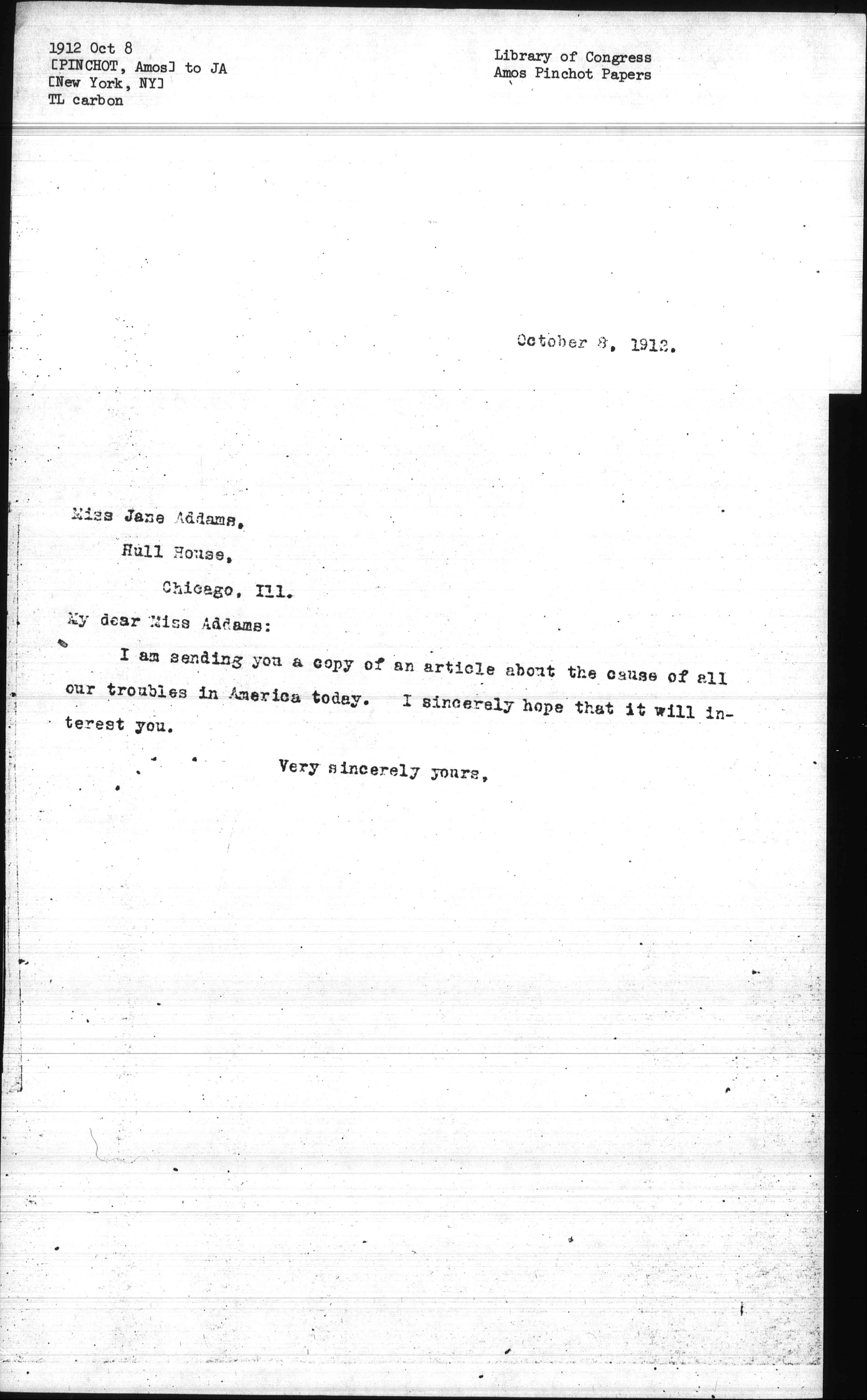 I am sending you a copy of an article about the cause of all our troubles in America today. I sincerely hope that it will interest you.