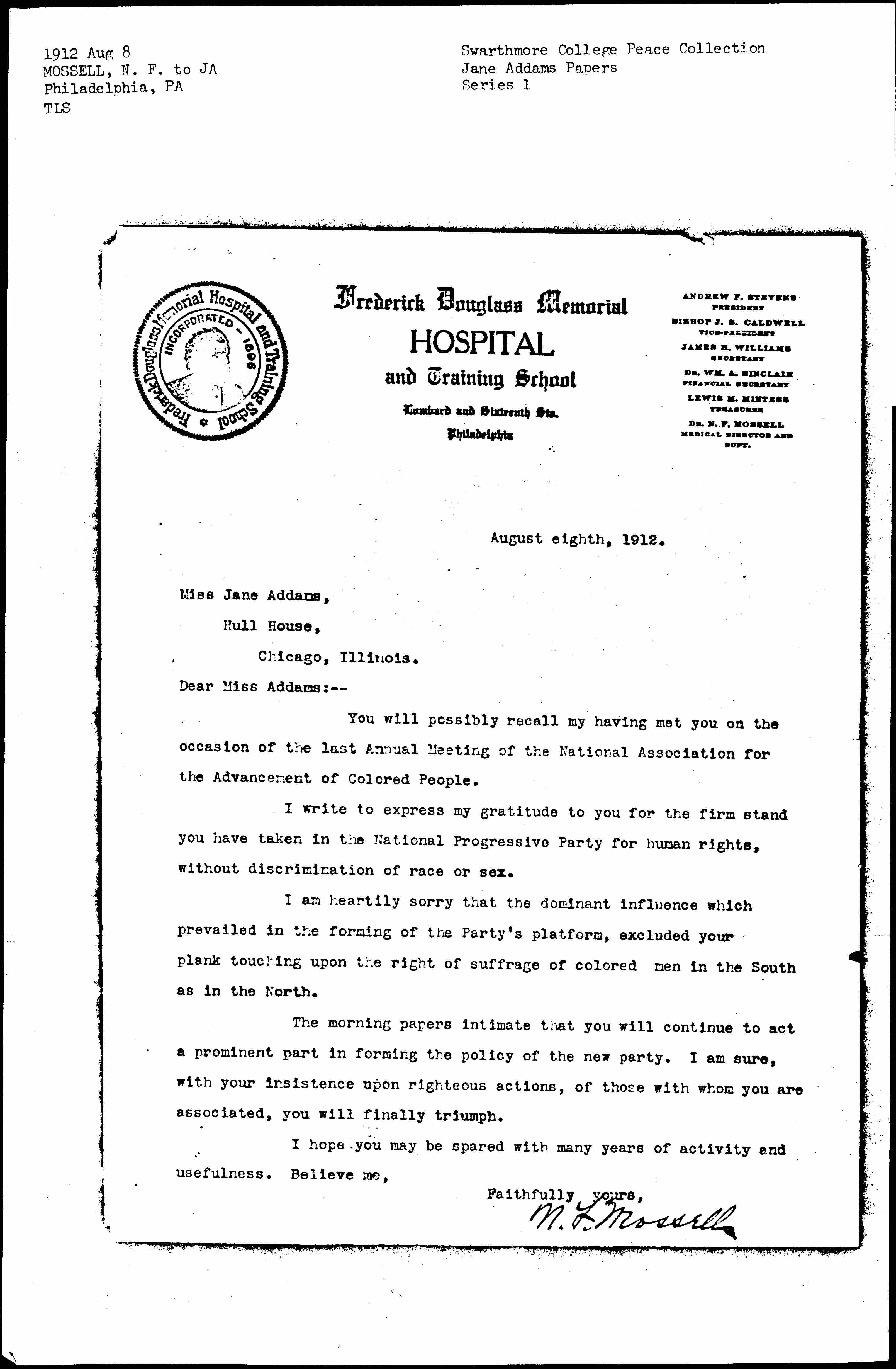 N. F. Mossell [signed]