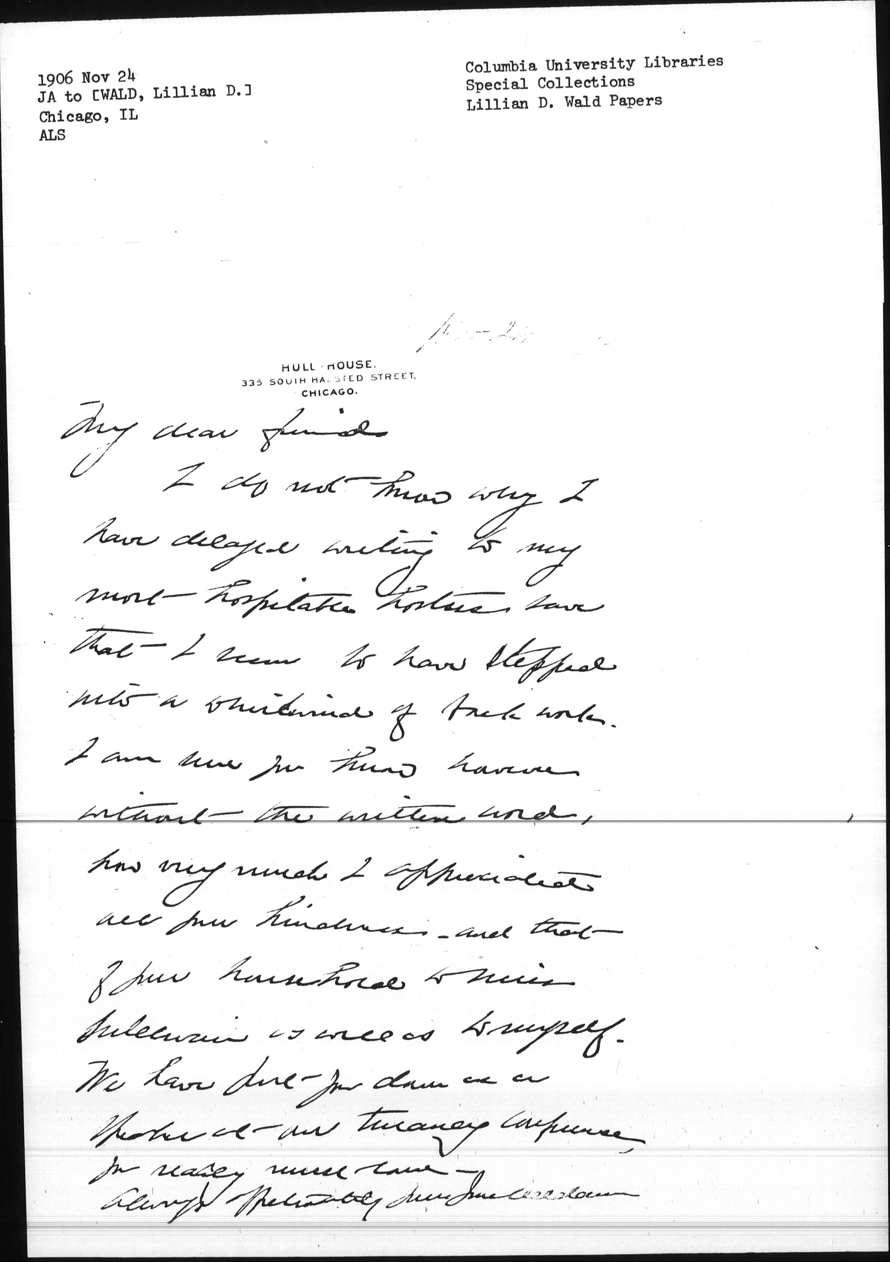 Always affectionately yours Jane Addams