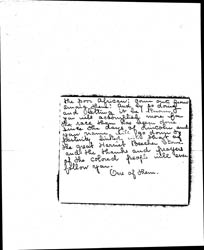 Oh! woman of the warm heart and golden tongue who has done so much for humanity do not identify yourself with those who have joined hands to crush [page 3] the poor African! Come out from among them! And by so doing and letting it be known you will accomplish more for the race than has been done since the days of Lincoln and your name will go down to posterity linked with that of the great Harriet Beecher Stowe and the thanks and prayers of the colored people will ever follow you.