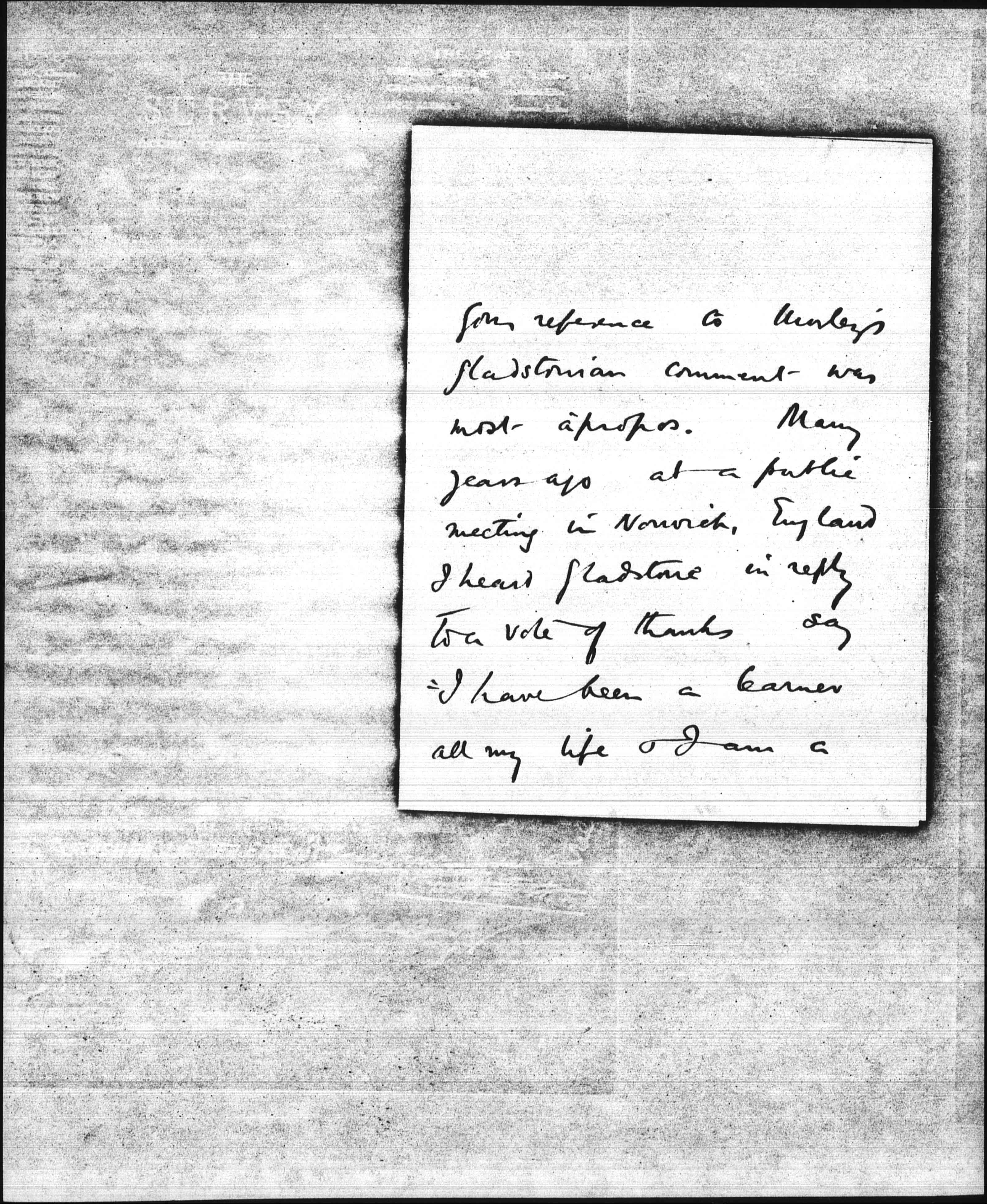Your reference to Morley's Gladstonian comment was most apropos. Many years ago at a public meeting in Norwich, England I heard Gladstone in reply to a vote of thanks say "I have been a learner all my life & I am a [page 4] learner still." This was after he had crossed 80. The idea exactly bears out Mr Morley's estimate.