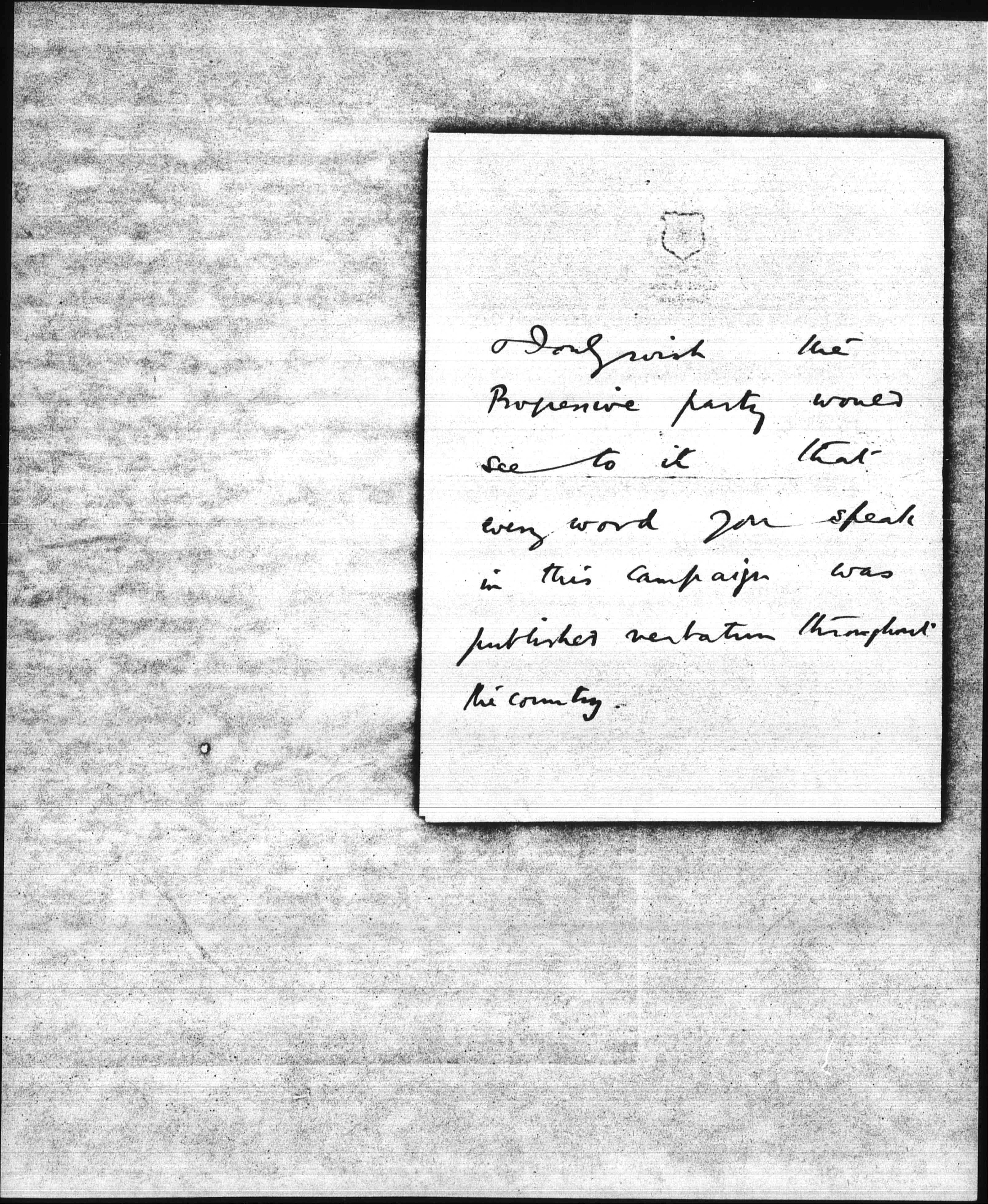 This is only a line to thank you for your speech at the Astor tonight. Argument, reproof and a lofty tone characterized every sentence you uttered [page 2] & I only wish the Progressive party would see to it that every word you speak in this campaign was published verbatim throughout the country. [page 3]