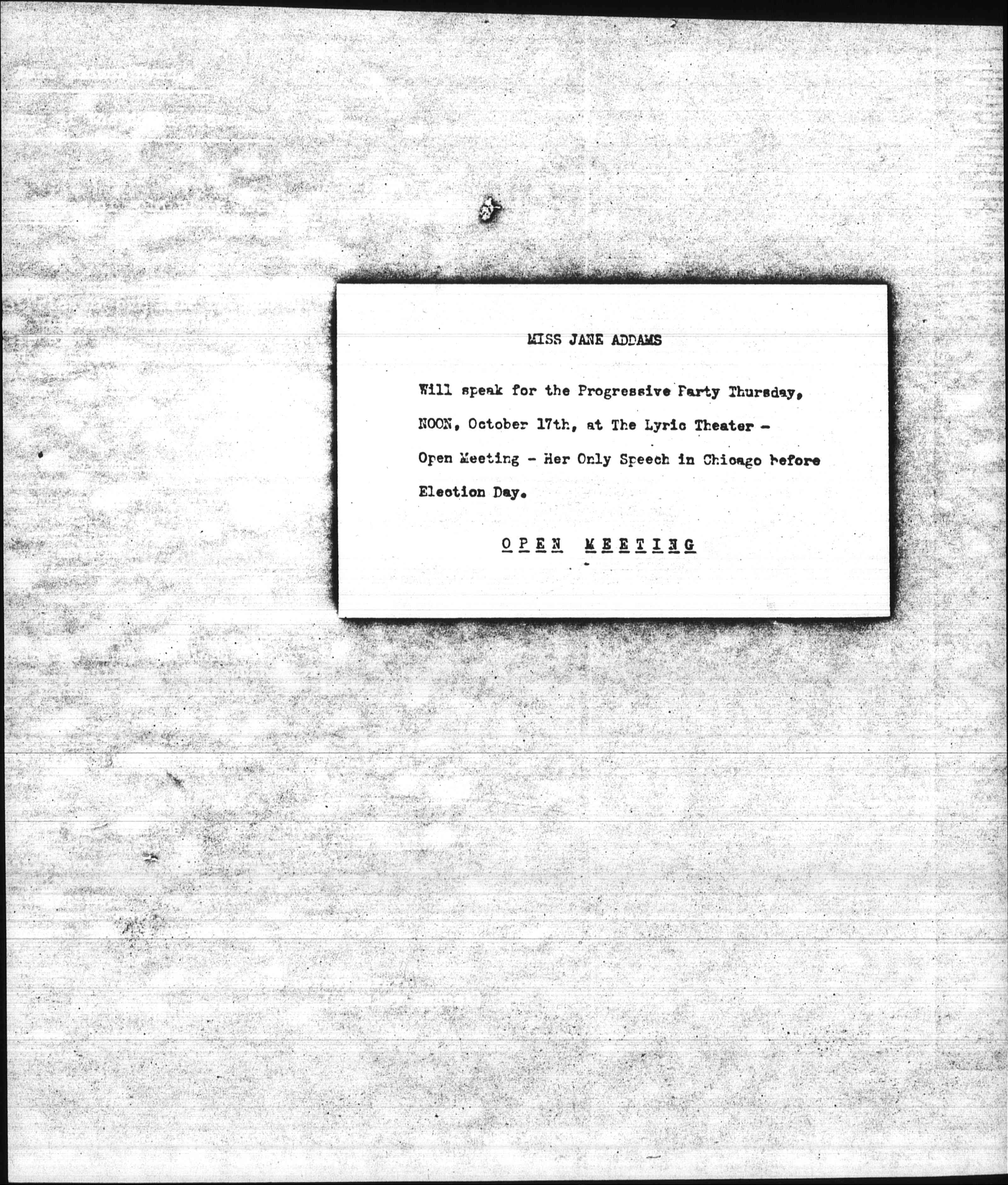 Open Meeting -- Her Only Speech in Chicago before Election Day.