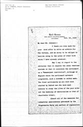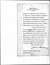 I have written an article for the American Magazine, also one for McClure's, <to be> published in November which may perhaps make this position more clear. Would it be in line with the purposes of The Century to publish an open letter in which I might give my point of view a little more completely and carefully? I should be glad for the opportunity.
