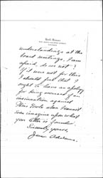 I am quite at a loss in regard to your letter which came this evening. I had never, of course, spoken to Miss Towle about the contract and never dreamed of saying what you quote me as having said. I did quote Mrs. [McCulloch] to the effect that she thought Miss Blackwell could terminate the contract. [page 2] I am sorry you consider me unjust in regard to Journal matters. I have used the best [judgment] I had in the matter and assessed that each member of the board did the same <with tolerance for differing opinion.> I certainly never have called you "inhuman" and am altogether quite bewildered by your letter.