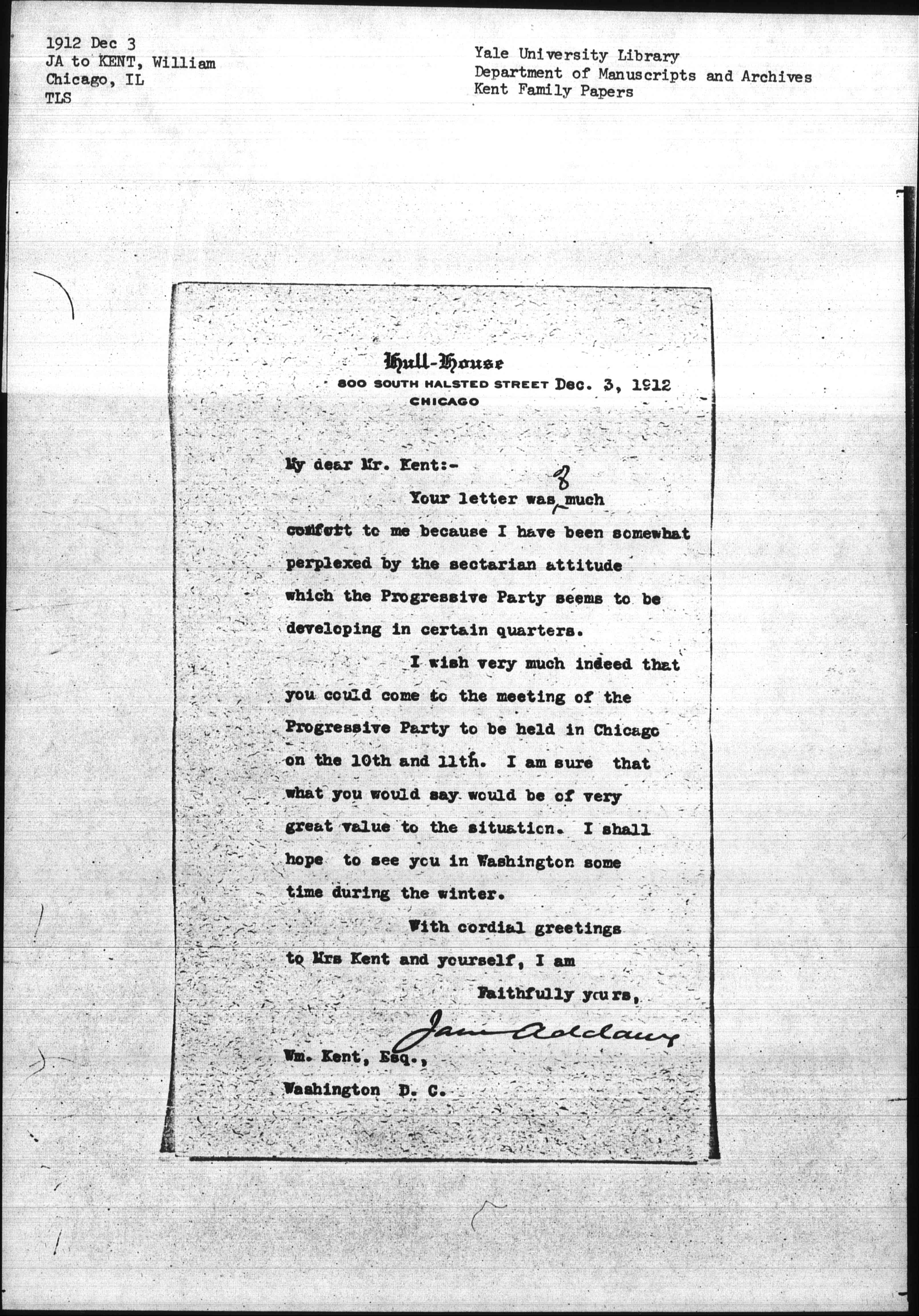 I wish very much indeed that you could come to the meeting of the Progressive Party to be held in Chicago on the 10th and 11th. I am sure that what you would say would be of very great value to the situation. I shall hope to see you in Washington some time during the winter.