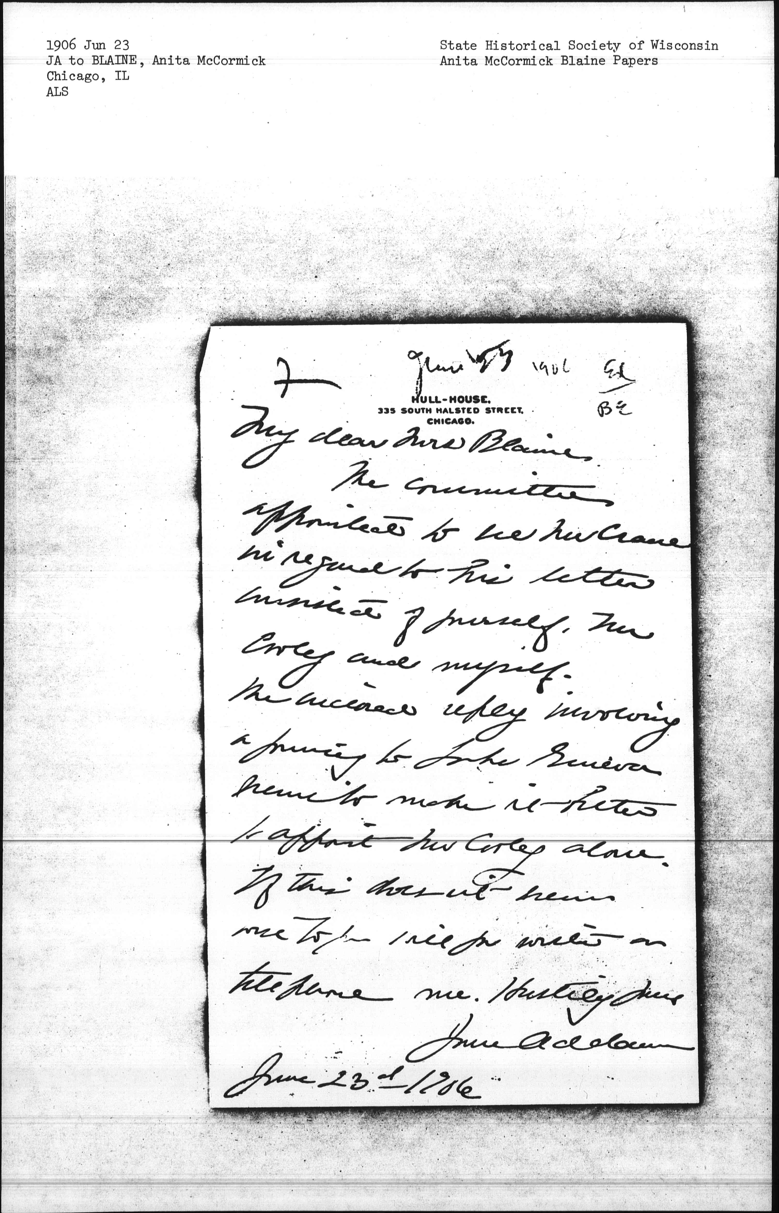 The committee appointed to see Mr Crane in regard to his letter consisted of yourself, Mr Cooley and myself.