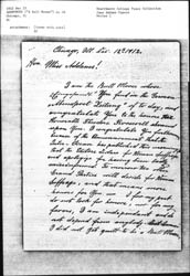 I am the Bull Moose whose "fingerprint" You find in the German "Abendpost Zeitung" of [today], and congratulate You to the honors the Honorable Theodore Roosevelt showered upon You. I congratulate You furthermore because of the Announcement that the Inter-Ocean has published this morning, that the Editors declare for Woman Suffrage and apologize for having been badly [misinformed]. [Tomorrow] two other Grand Parties will decide for Woman Suffrage, and that means more honors for You.-- I for my part do not look for honors, nor for any favors, I am independent and do not depend from anybody. But because I did not yet [quit] to be a Bull Moose, [page 2] I feel it to be my duty to send You the following information to save You from a disaster: