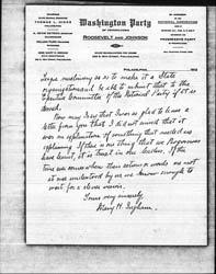 Now may I say that I was so glad to have a letter from you that I did not mind that it was an exaplanation of something that needed no explaining. If there is one thing that we Progressives have [learned], it is trust in our leaders. If the time ever comes when their actions or words are not at once understood by us, we know enough to wait for a clearer vision.
