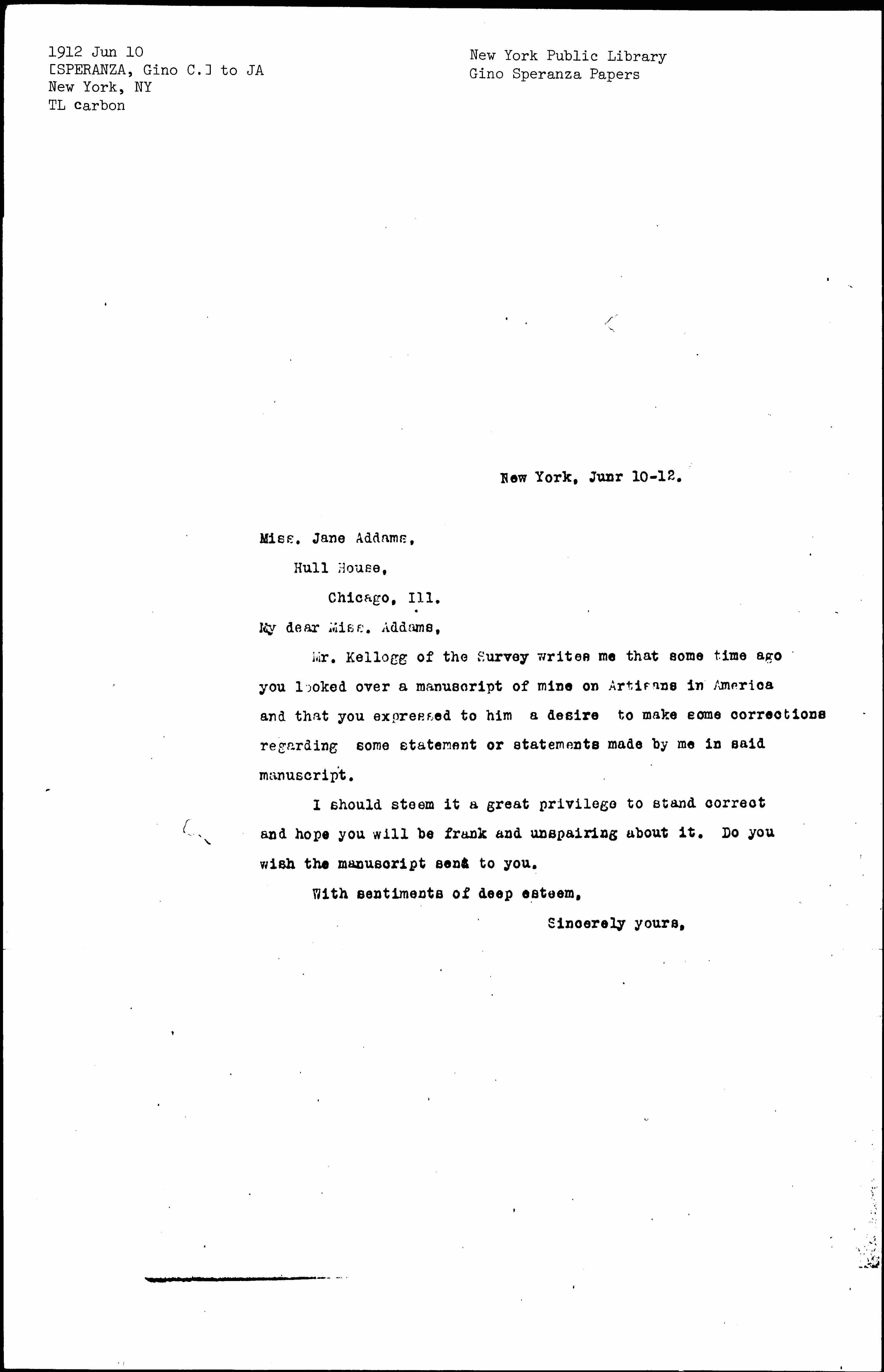 Mr. Kellogg of the Survey writes me that some time ago you looked over a manuscript of mine on Artisans in America and that you expressed to him a desire to make some corrections regarding some statement or statements made by me in said manuscript.