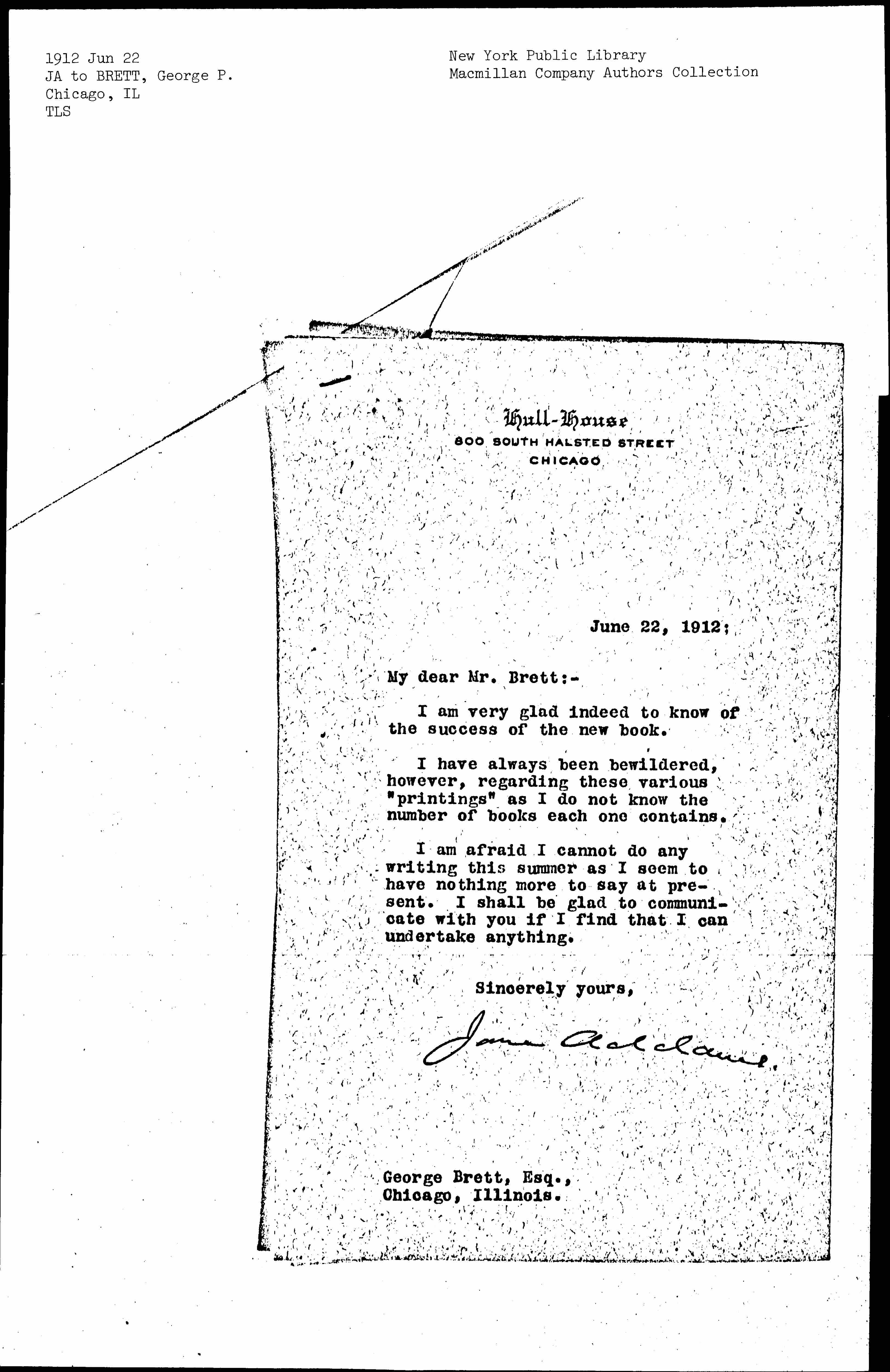 Jane Addams. [signed]