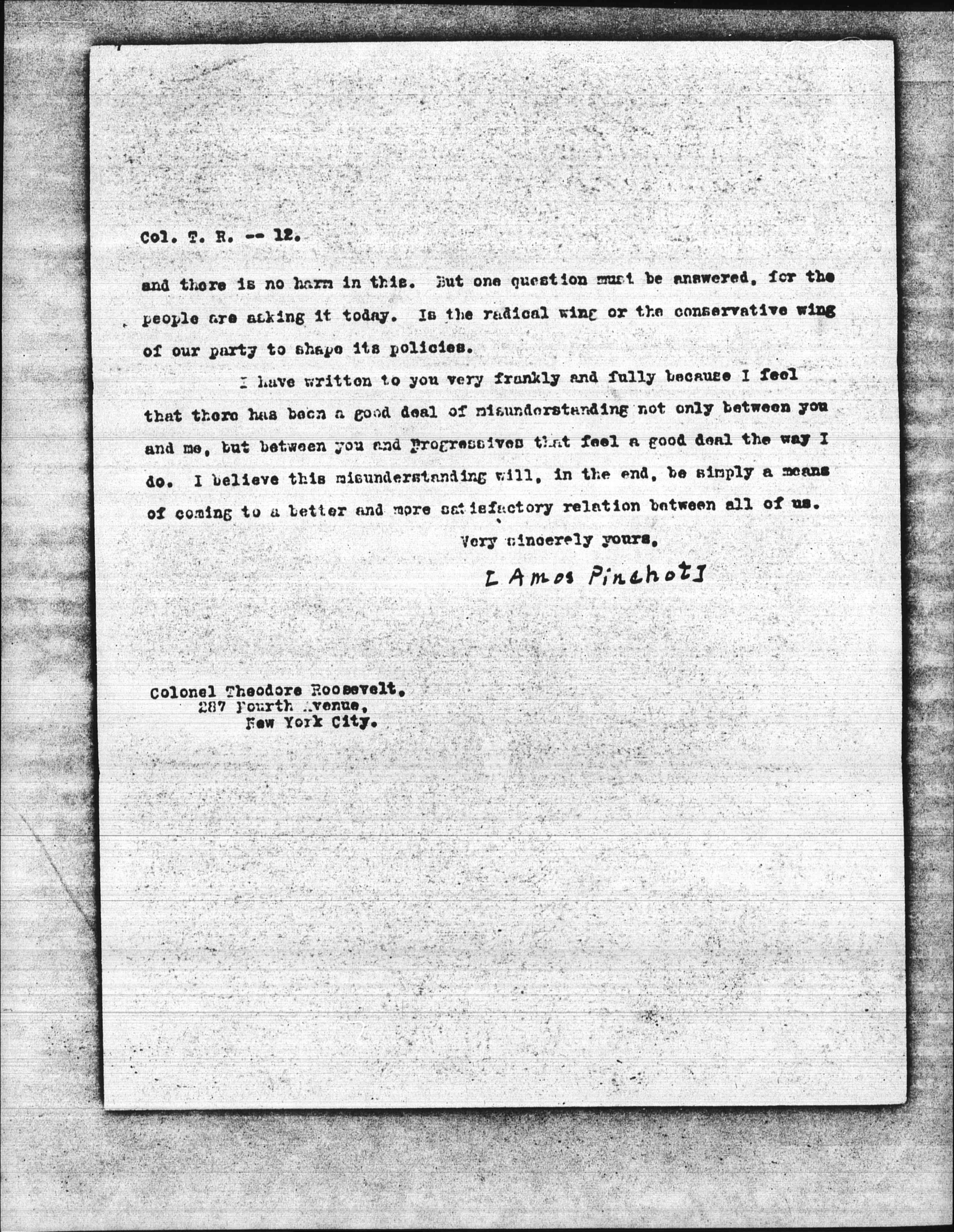 I have written to you very frankly and fully because I feel that there has been a good deal of misunderstanding not only between you and me, but between you and Progressives that feel a good deal the way I do. I believe this misunderstanding will, in the end, be simply a means of coming to a better and more satisfactory relation between all of us.
