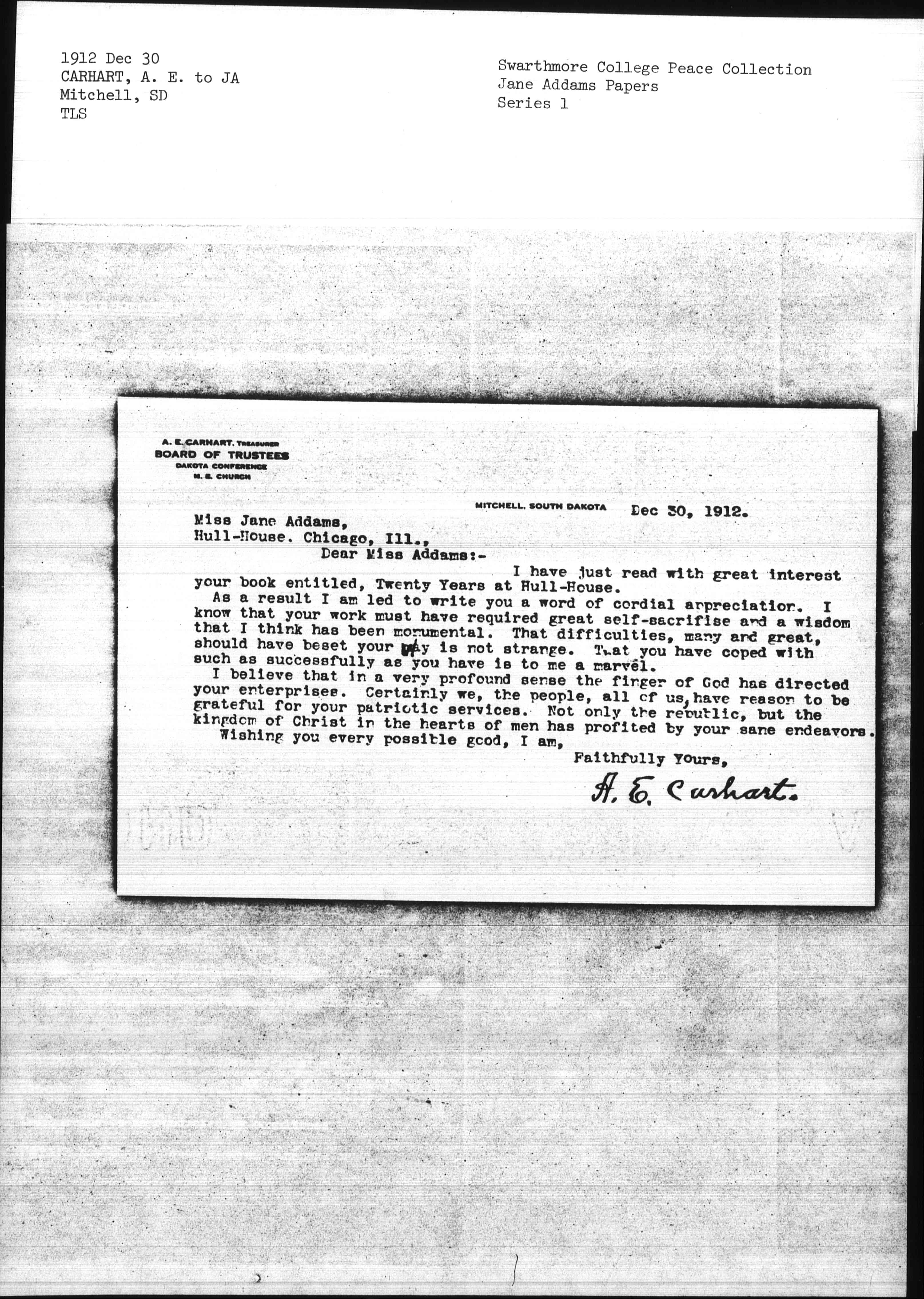 A. E. Carhart. [signed]