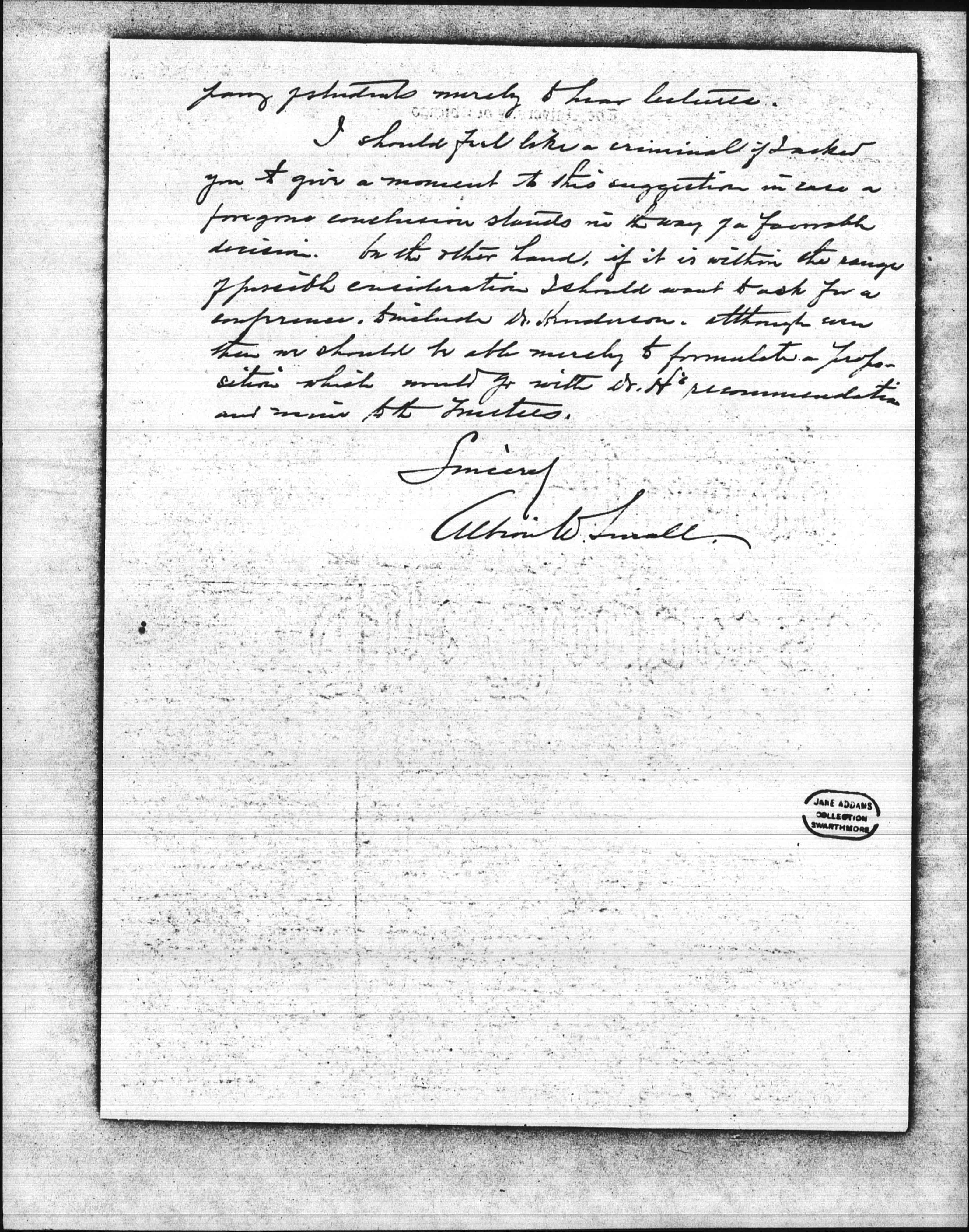 I should feel like a criminal if I asked you to give a moment to this suggestion in case a foregone conclusion stands in the way of a favorable decision. On the other hand, if it is within the range of possible consideration I should want to ask for a conference to include Dr. Henderson. Although even then we should be able merely to formulate a proposition which would go with Dr. H's recommendation and [illegible] to the Trustees.