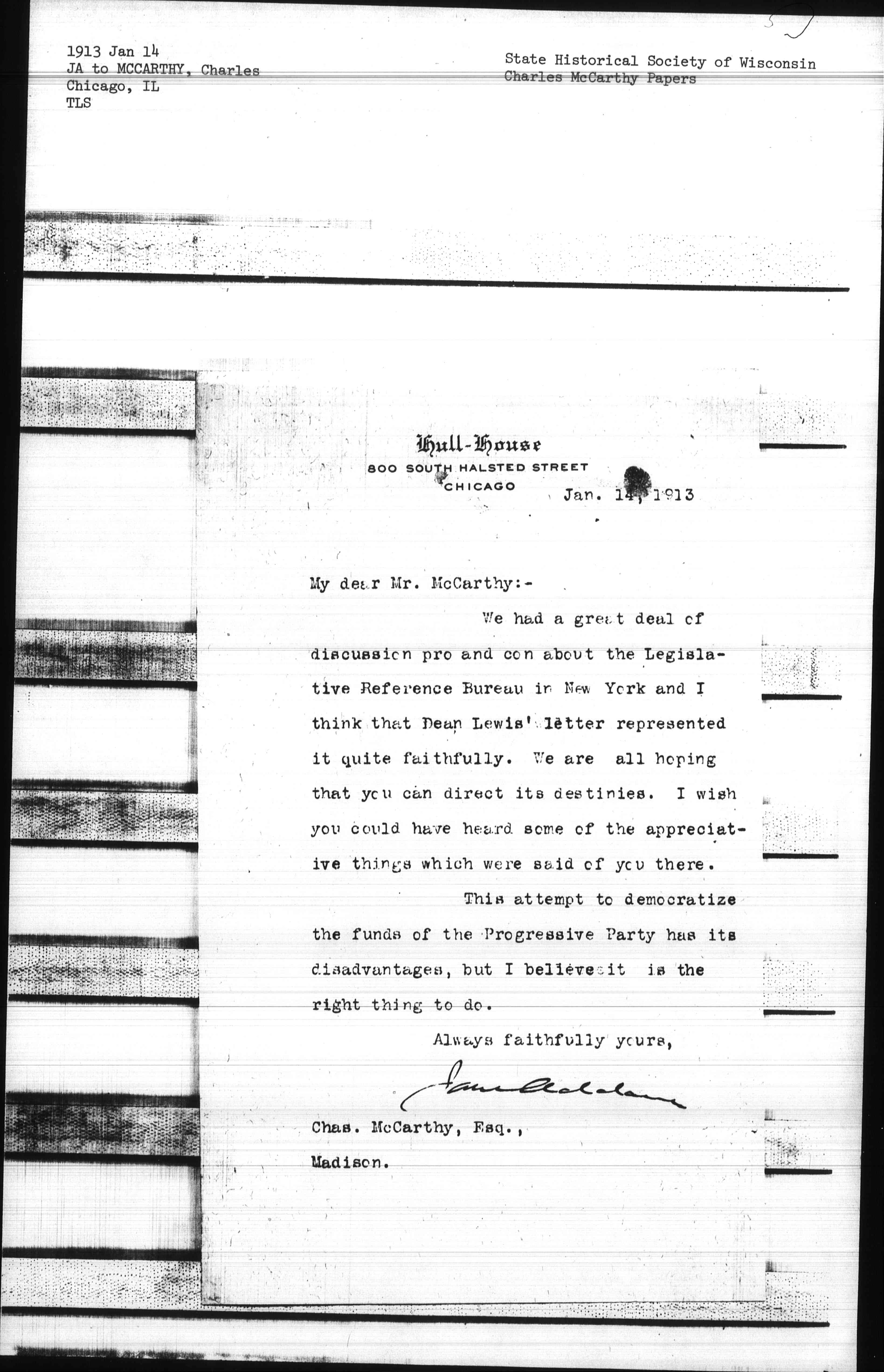 Jane Addams [signed]
