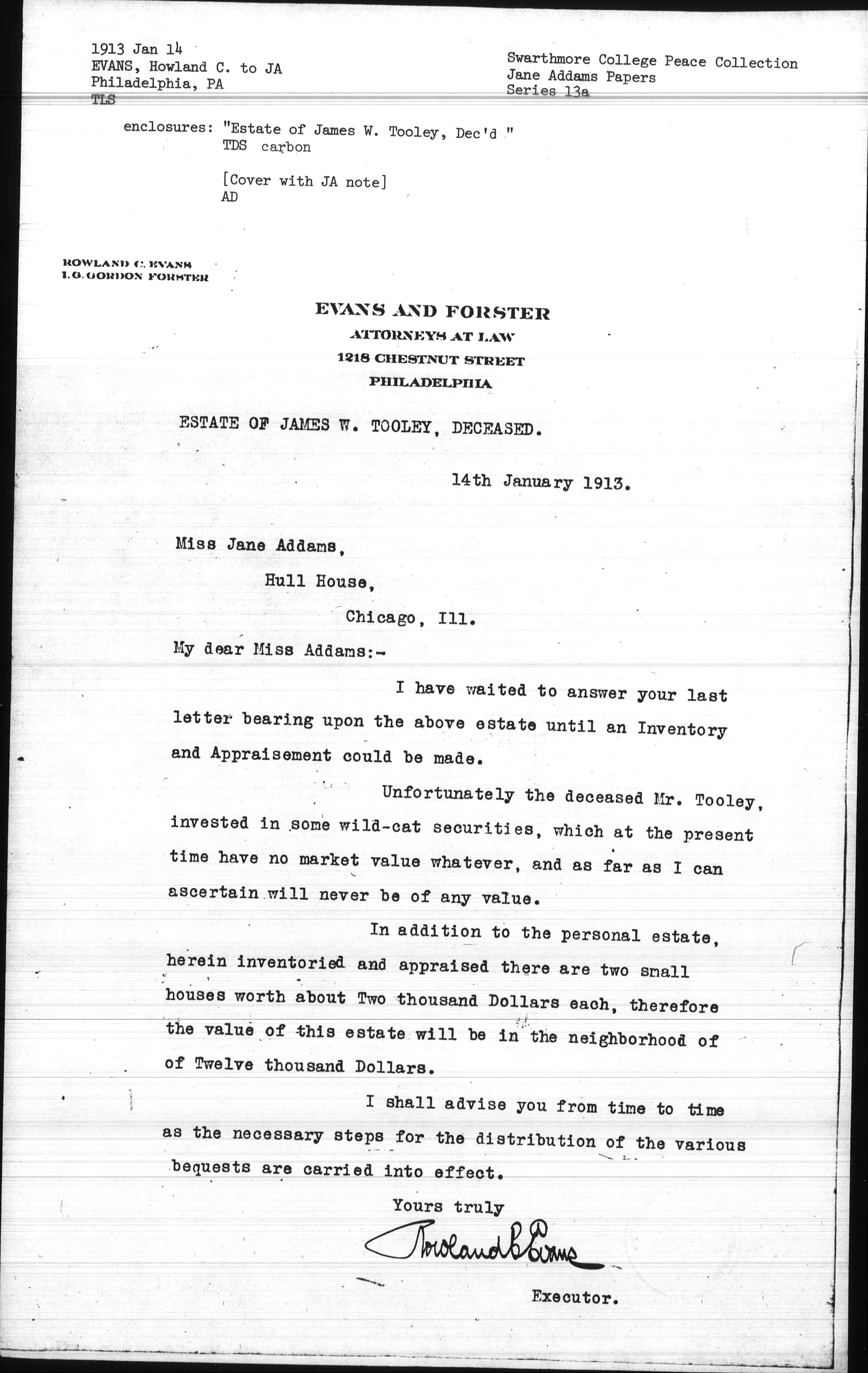 Unfortunately the deceased Mr. Tooley, invested in some wild-cat securities, which at the present time have no market value whatever, and as far as I can ascertain will never be of any value.