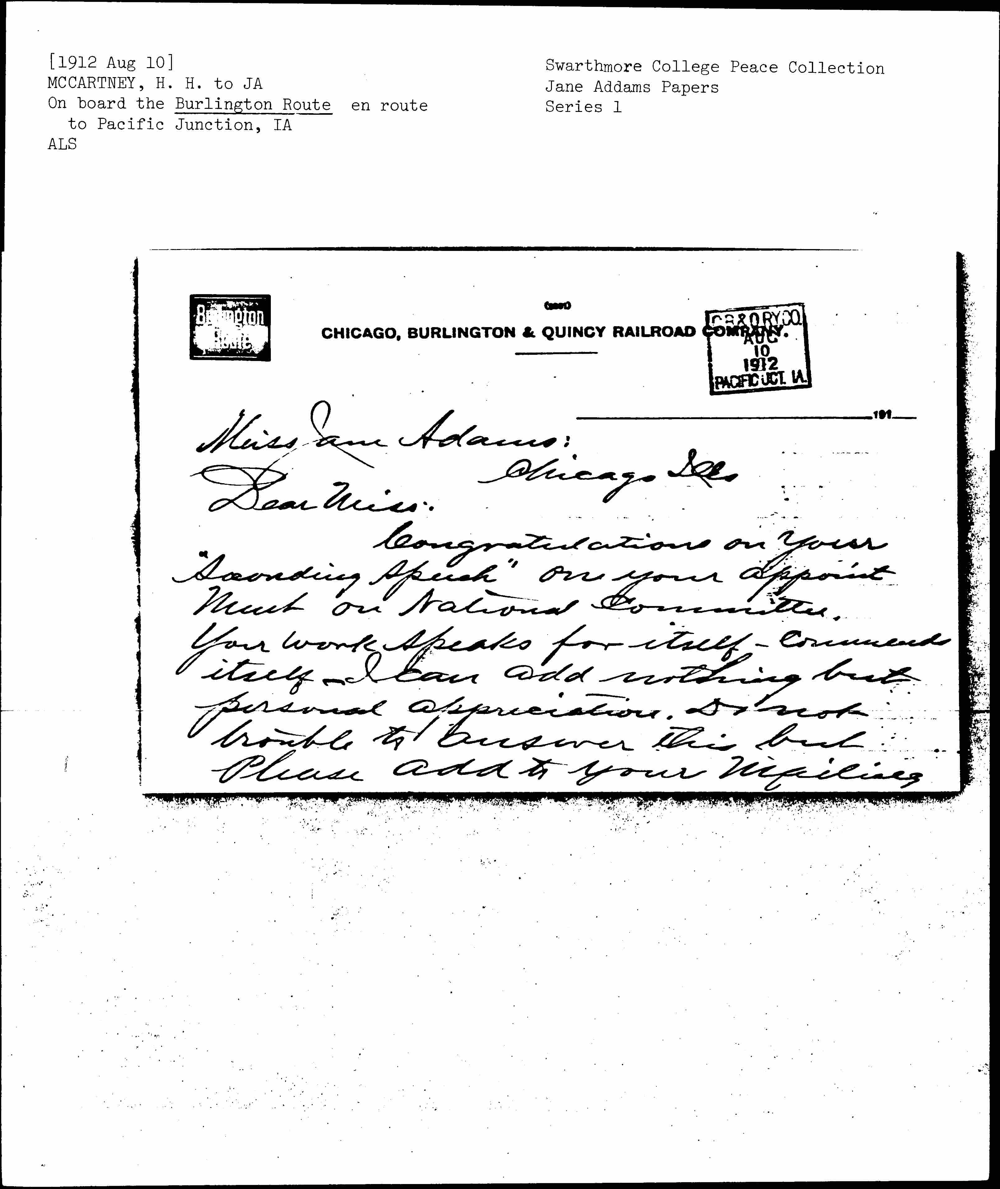 Congratulations on your "seconding speech" on your appointment on National Committee. Your work speaks for itself -- commends itself -- I can add nothing but personal appreciation. Do not trouble to answer this but Please add to your mailing [page 2] list of campaign literature,