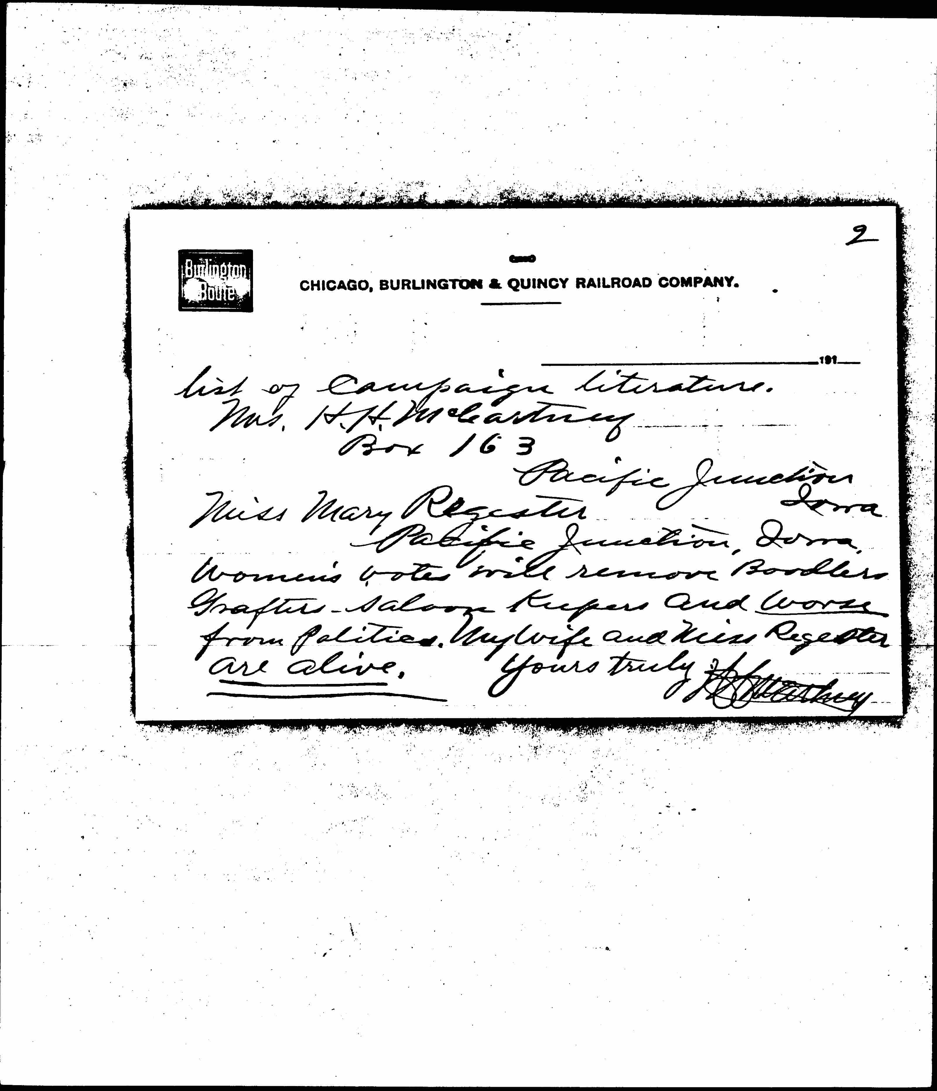Women's votes will remove Boodlers, Grafters, saloon keepers and worse from politics. My wife and Miss Regester are alive.