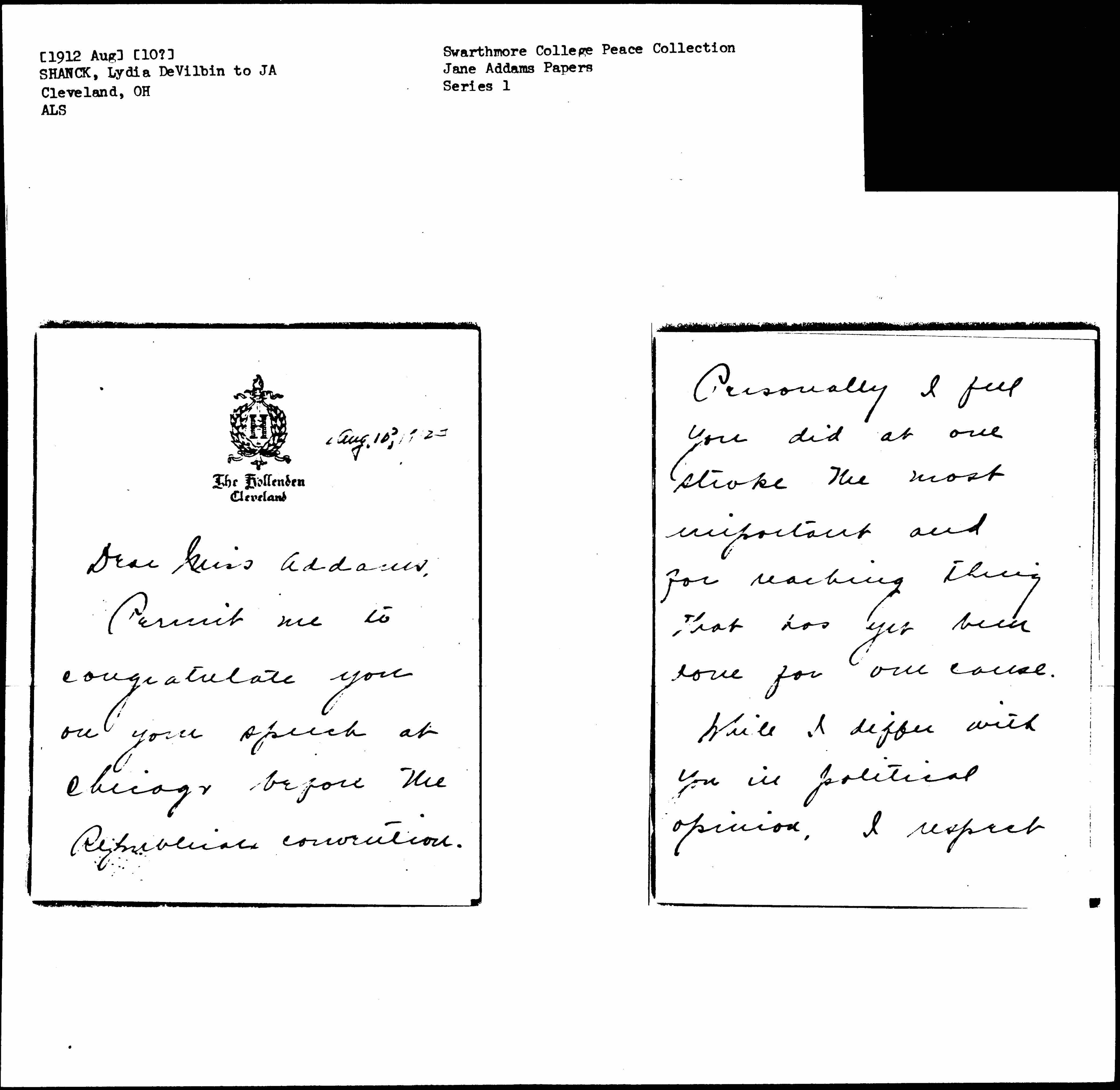 Permit me to congratulate you on your speech at Chicago before The Republican convention. [page 2] Personally I feel you did at one stroke the most important and far reaching thing that has yet been done for one cause.