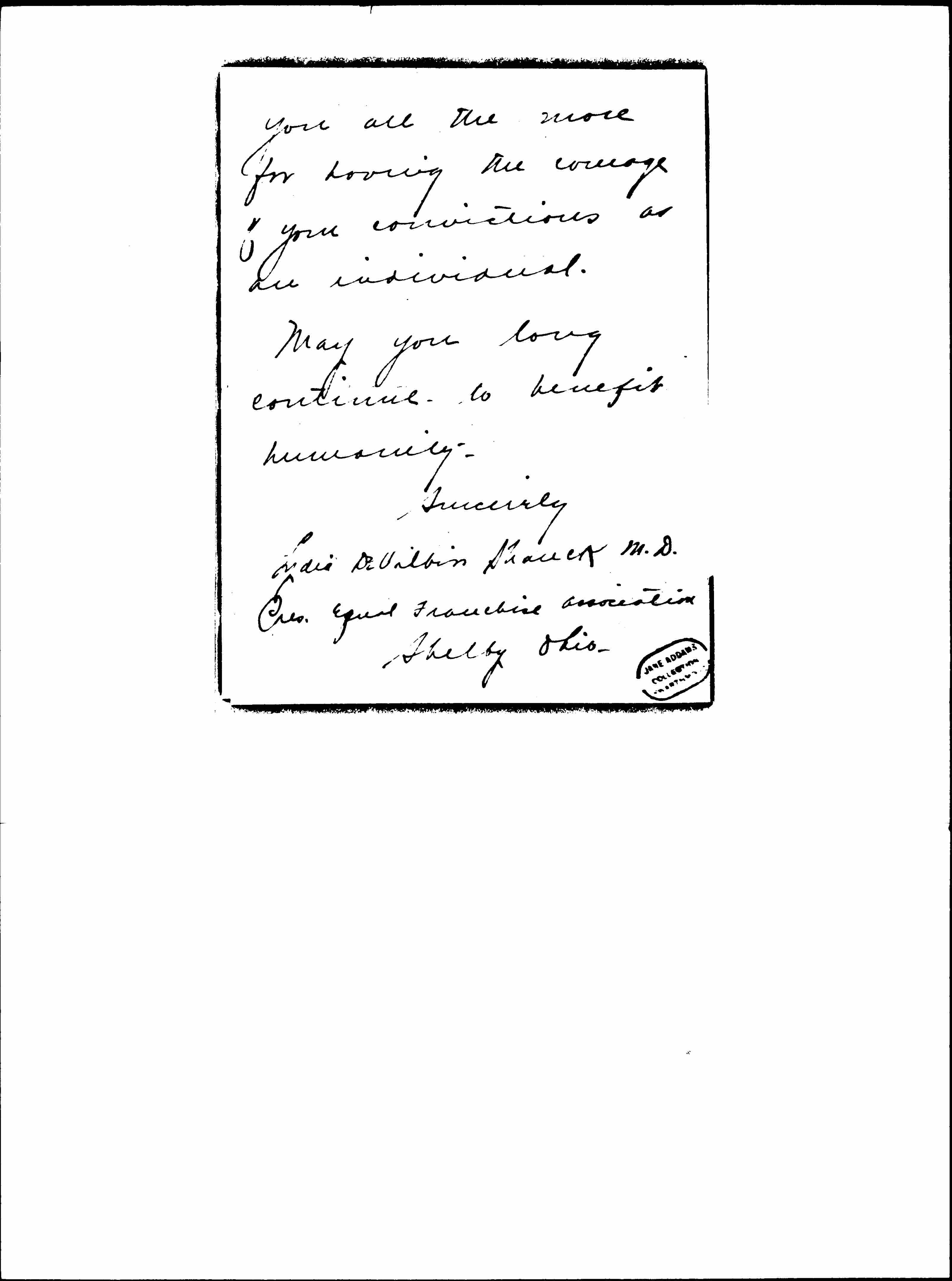 Dear Miss Addams,