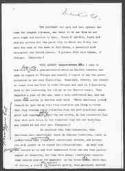 MISS ADDAMS: Almost always When I come to New York I ↑frequently↓ hear a generalization which an English traveler has made in regard to Chicago and usually I regret to say the generalization is not very flattering. Sometimes, however, the traveler comes from New York to visit Chicago and says an illuminating word or two concerning the cities on the Eastern coast. This happened a year or two ago, when a very cultivated man, who had spent some ↑six↓ months in America said this: "While Americans pride themselves upon being free from tradition and like to think that they treat every situation from the most practical standpoint" and regard it ↑solely↓ upon its own merits, he had discovered that they were more bound by the tradition they did not know, than any people he had ever met. (Laughter.)