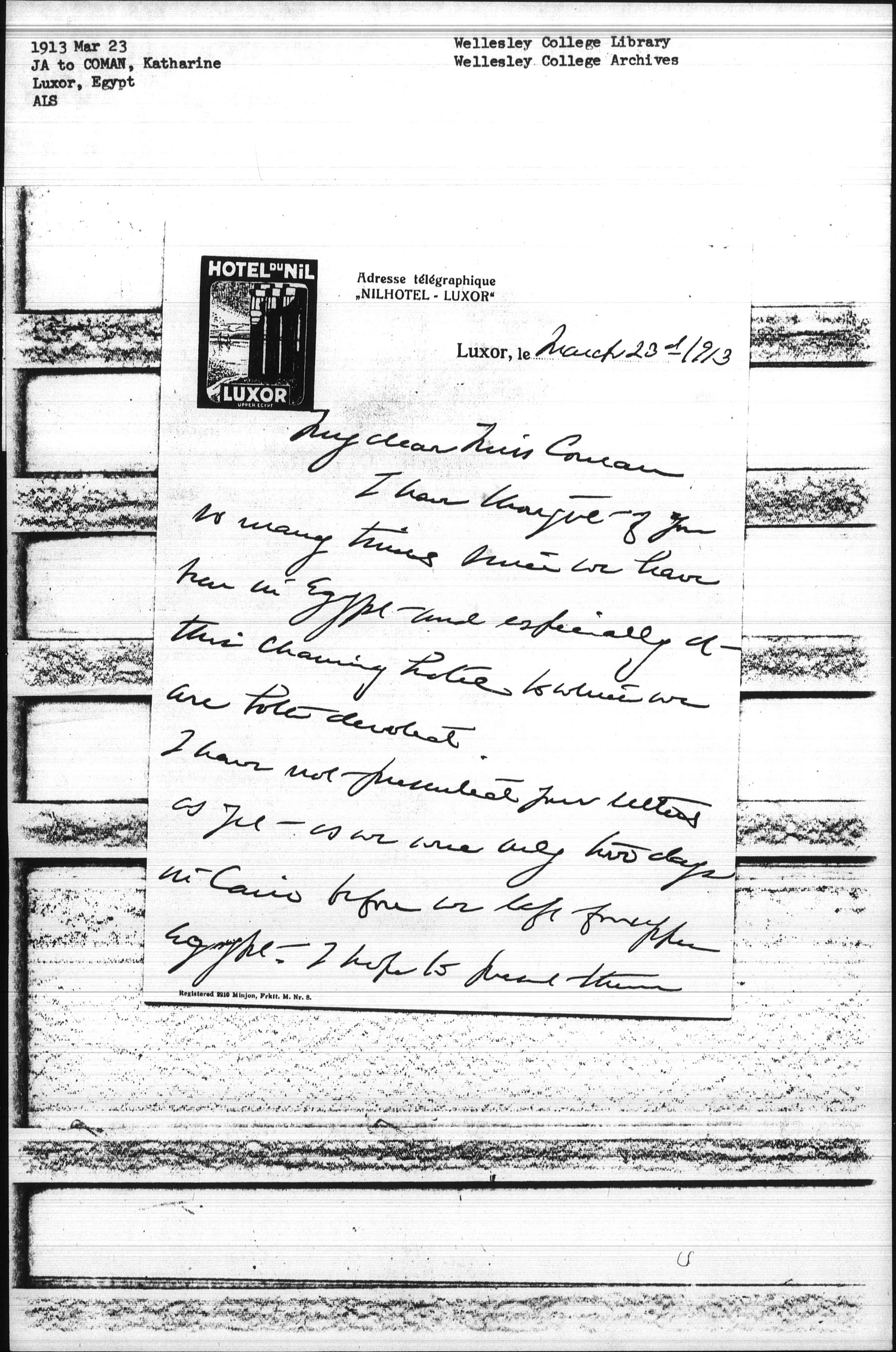 I have thought of you so many times since we have been in Egypt and especially at this charming hotel to which we are both devoted.