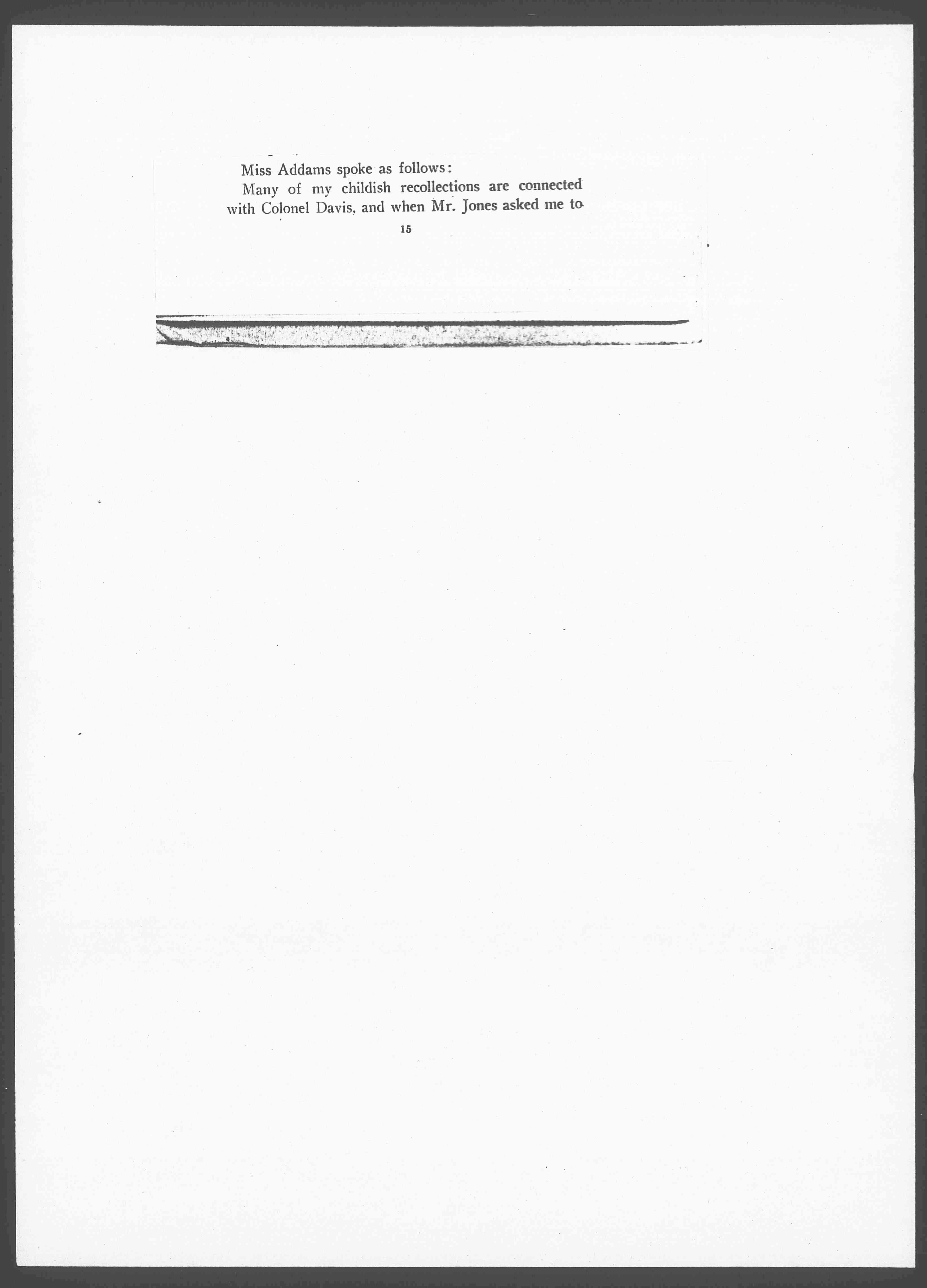Many of my childish recollections are connected with Colonel Davis, and when Mr. Jones asked me to [page 2] come here this morning in his name it was quite impossible for me to refuse.