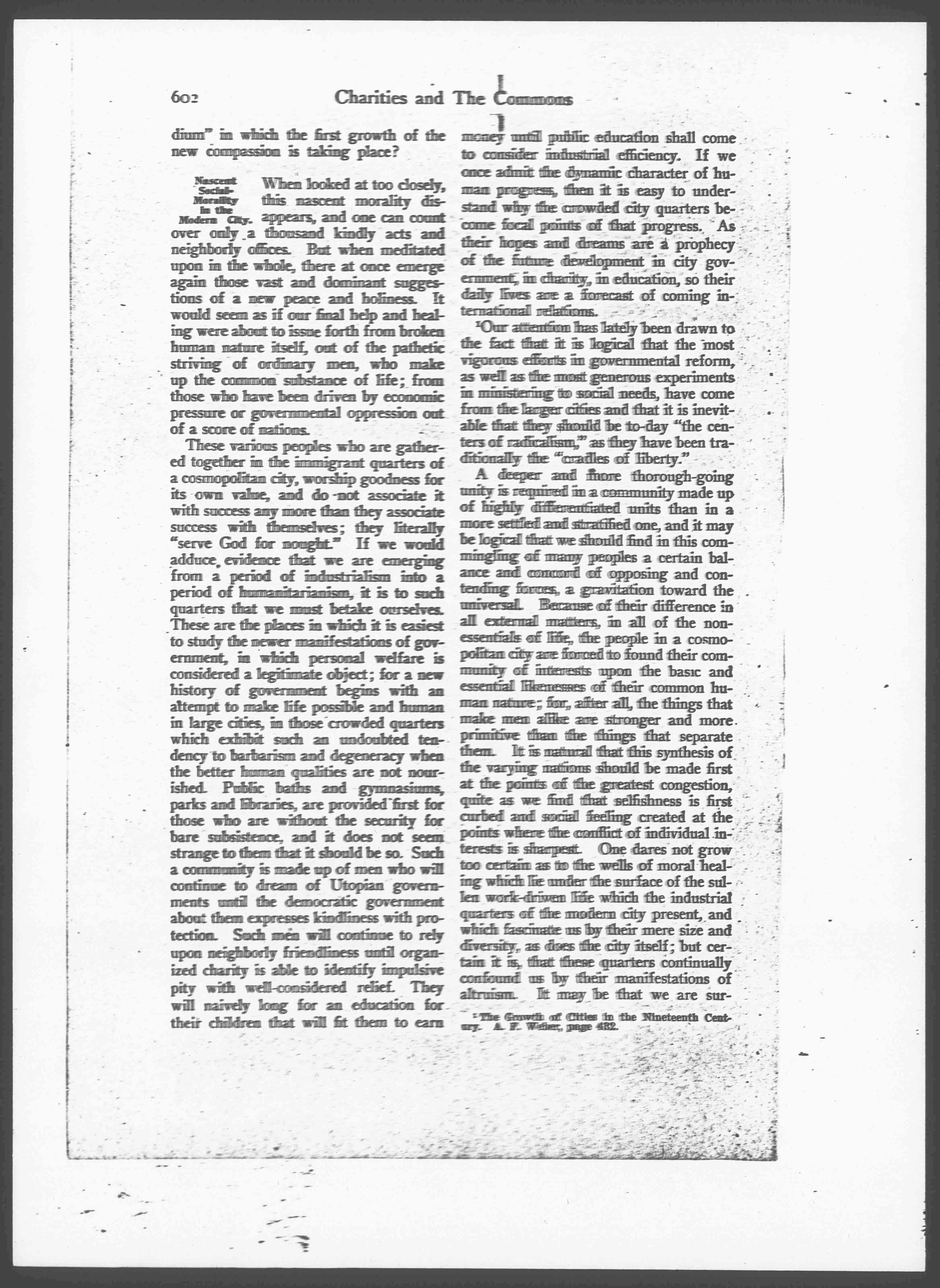 [3]Our attention has lately been drawn to the fact that it is logical that the most vigorous efforts in governmental reform, as well as the most generous experiments in ministering to social needs, have come from the larger cities and that it is inevitable that they should be [today] "the centers of radicalism," as they have been traditionally the "cradles of liberty."