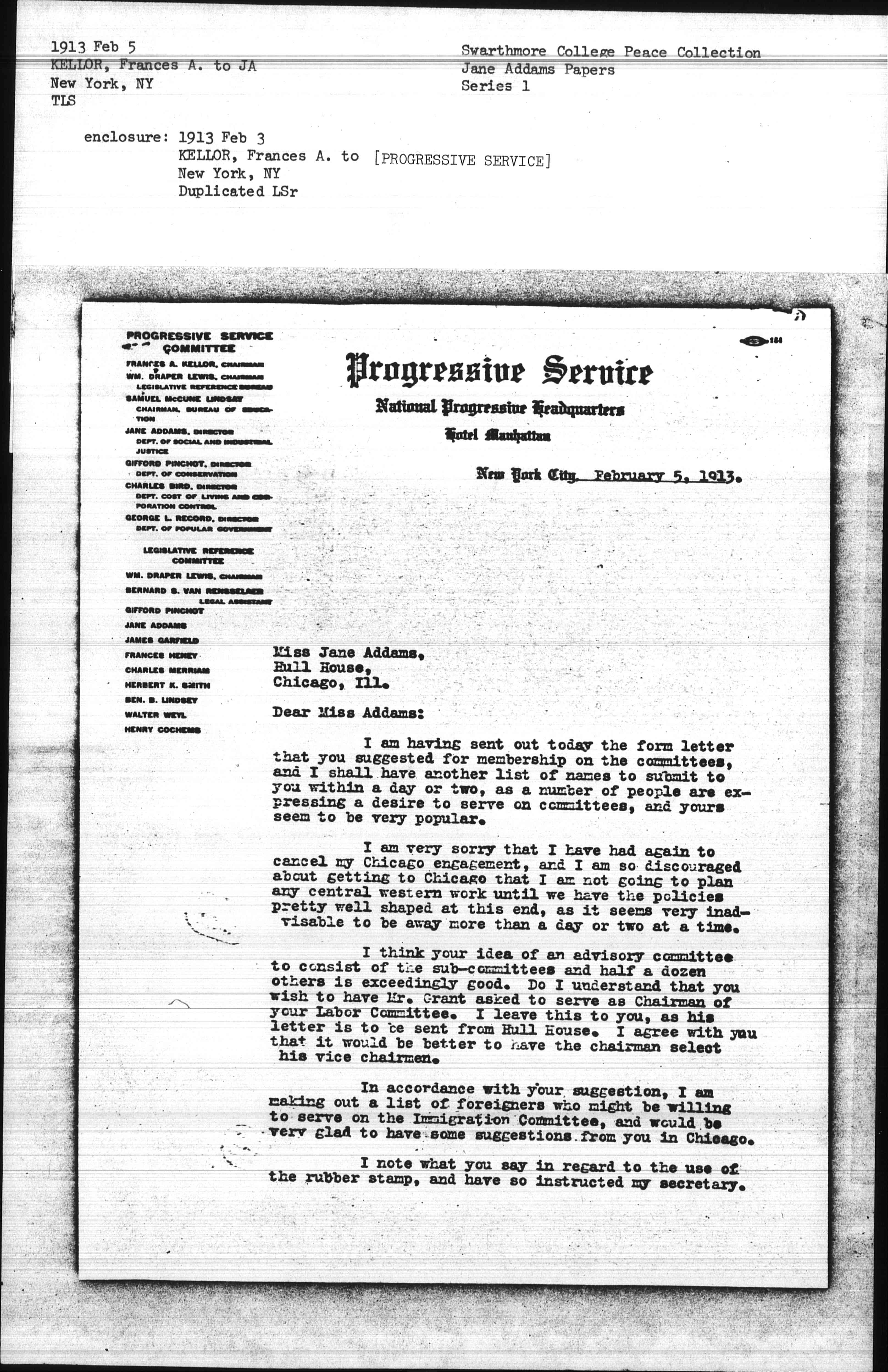 I congratulate you upon the organization of the Progressive Service of Illinois. It seems to me an exceedingly good group of people, and promises very well. I am taking up with Mrs. Plummer directly the question of cooperation.