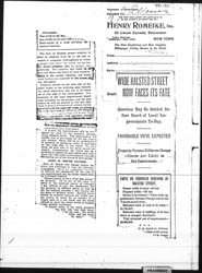 Property owners on the west side of the street object to the widening plan because the extra thirty-four feet are to be sliced off that side of the thoroughfare. The members of the local improvement board look favorably on the project, and for that reason as well as because of the fact that there is such a divergence of opinion among the owners of the property along the street, the body may vote in favor of the change. [illegible words] into the courts for the main settlement. The judiciary would [illegible words] problem when the people [illegible words] individual piece of property.