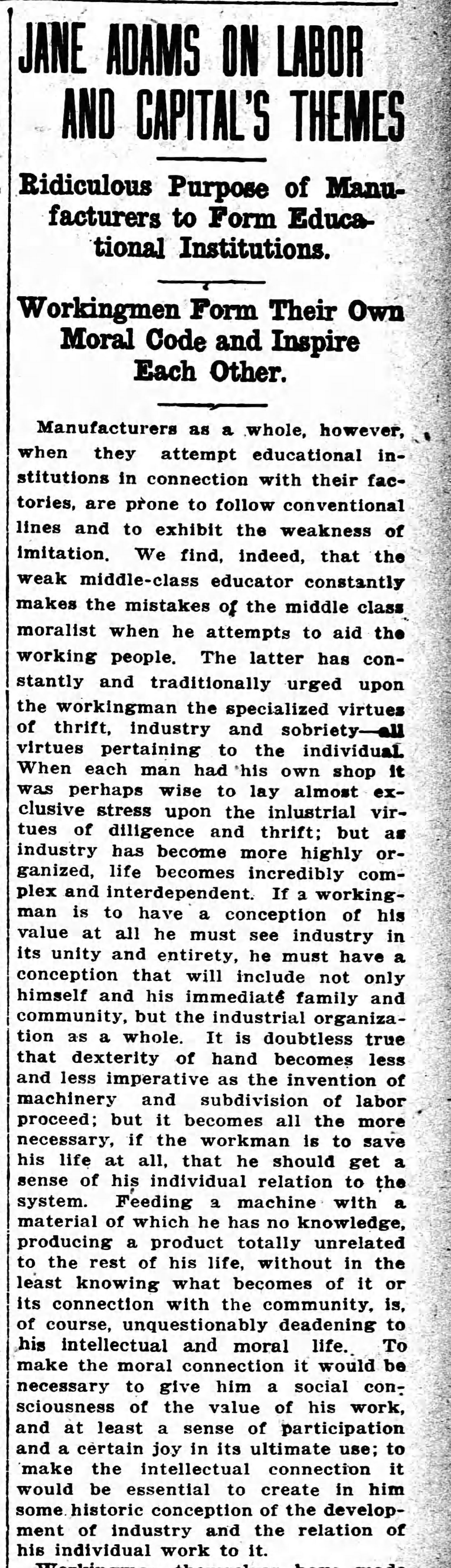 JANE ADDAMS ON LABOR AND CAPITAL'S THEMES