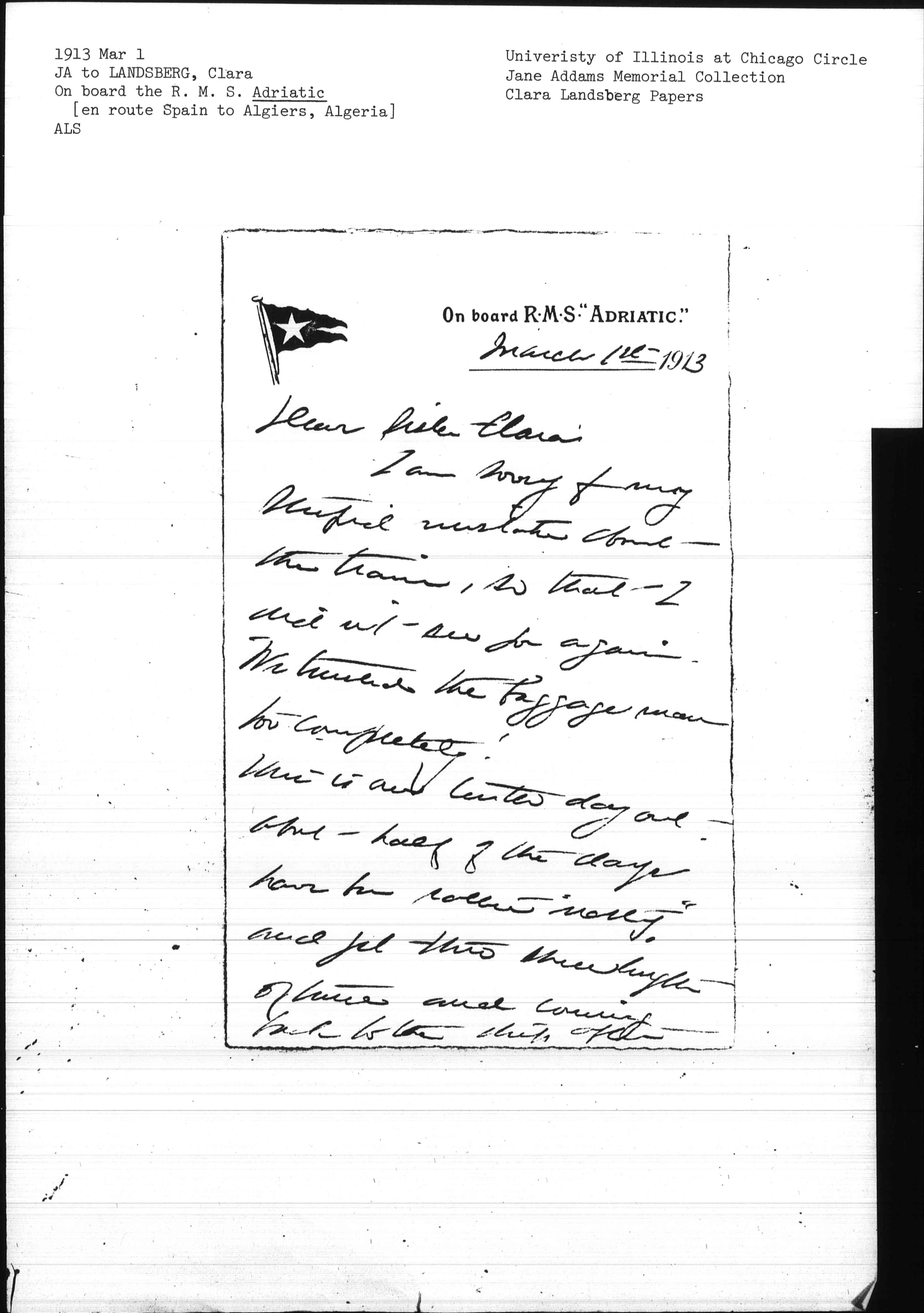 On board R.M.S. "ADRIATIC."