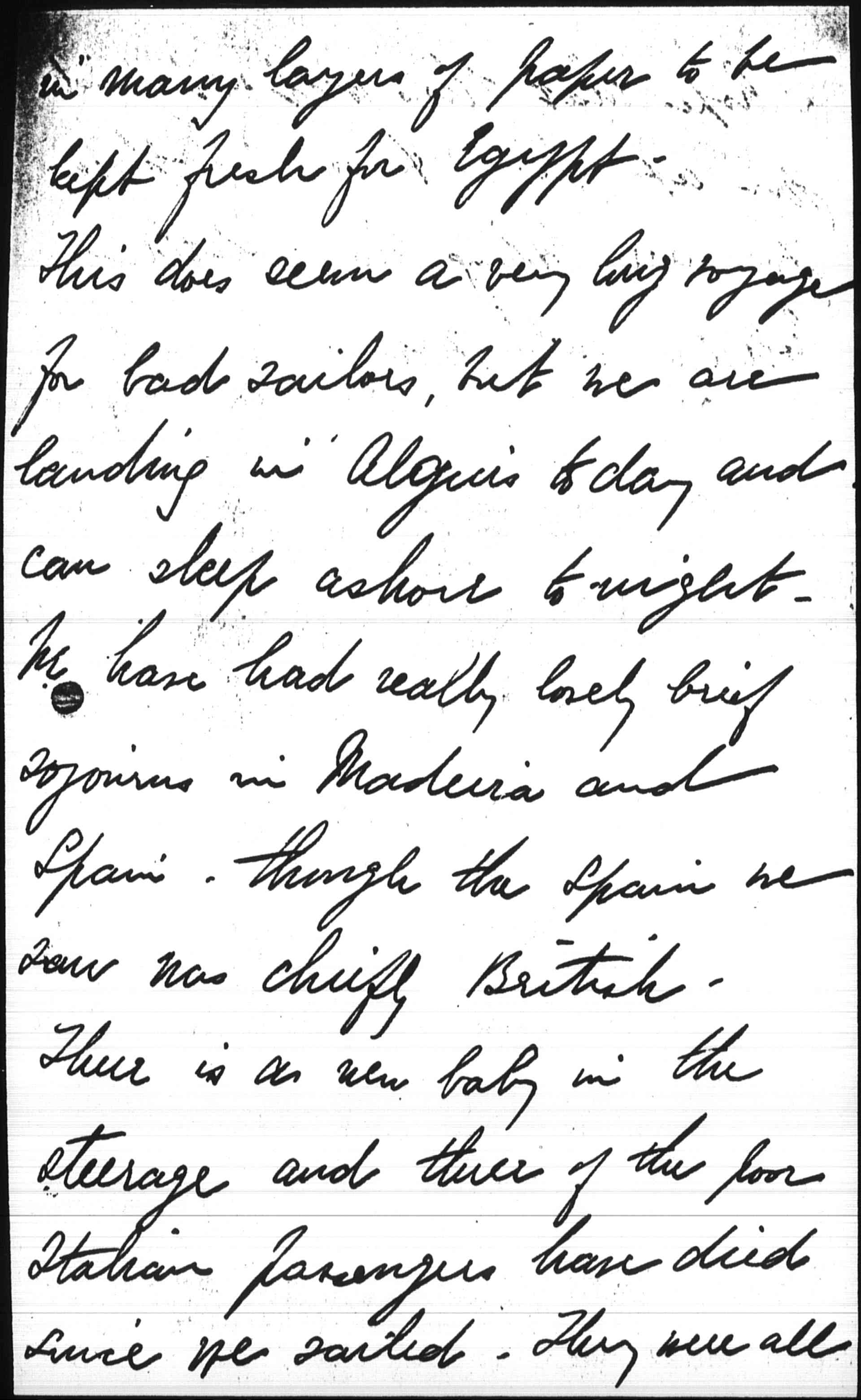 There is a new baby in the steerage and three of the poor Italian passengers have died since we sailed. They were all [page 3] being deported and it does seem as if we might have let them die peacefully ashore instead of sending them away in their last days.