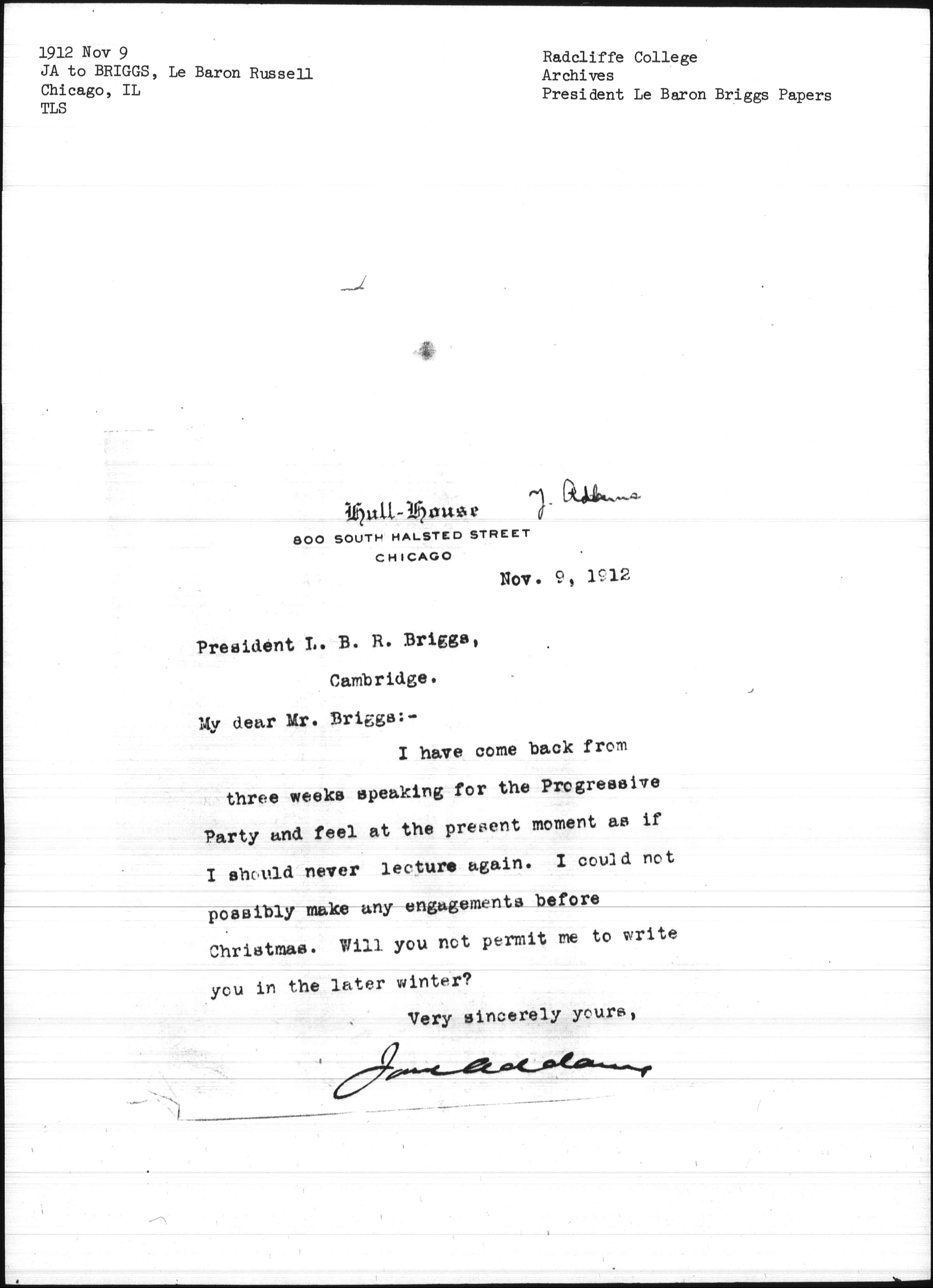 Jane Addams [signed]