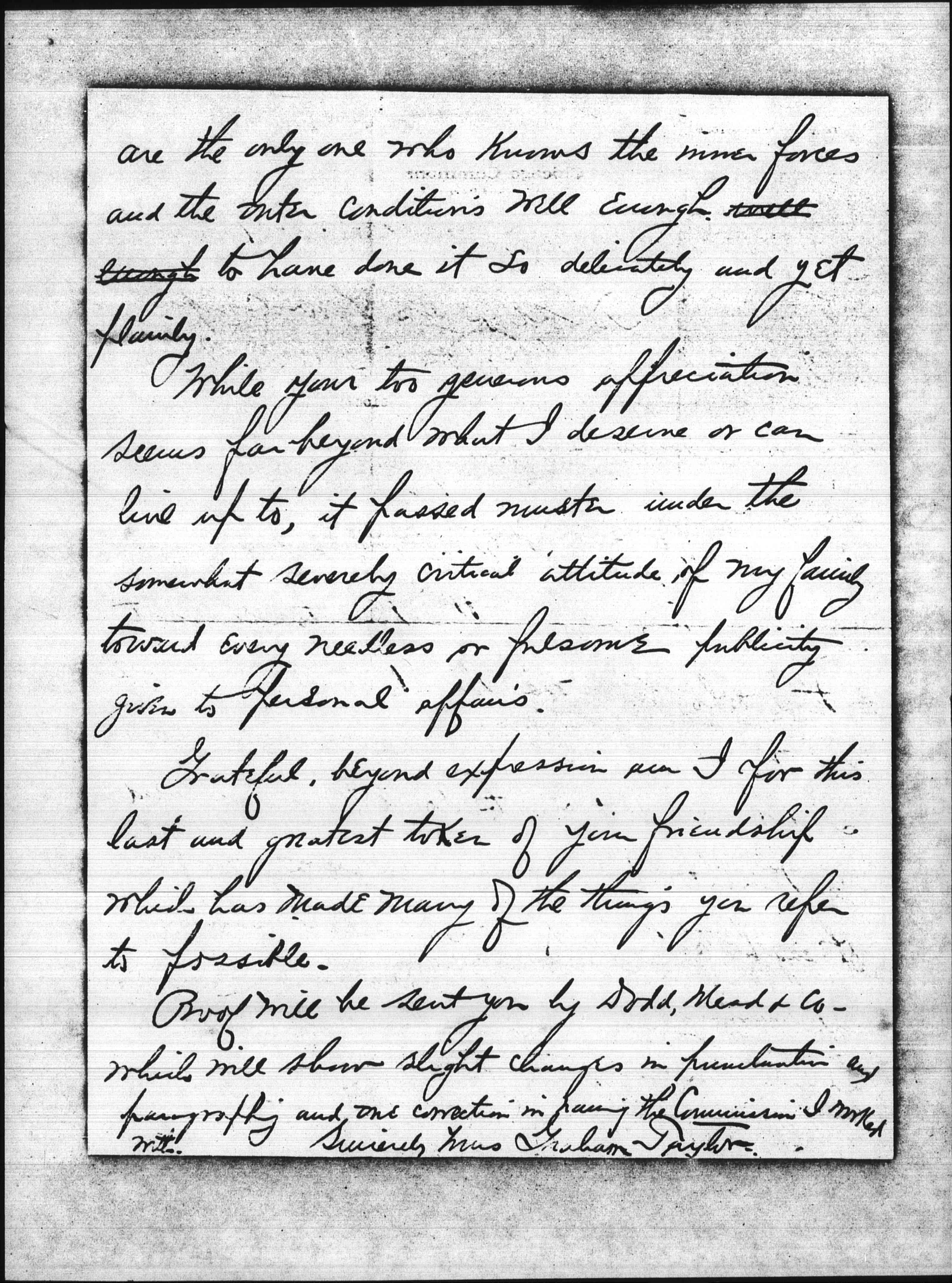 Grateful, beyond expression am I for this last and greatest token of your friendship which has made many of the things you refer to possible.