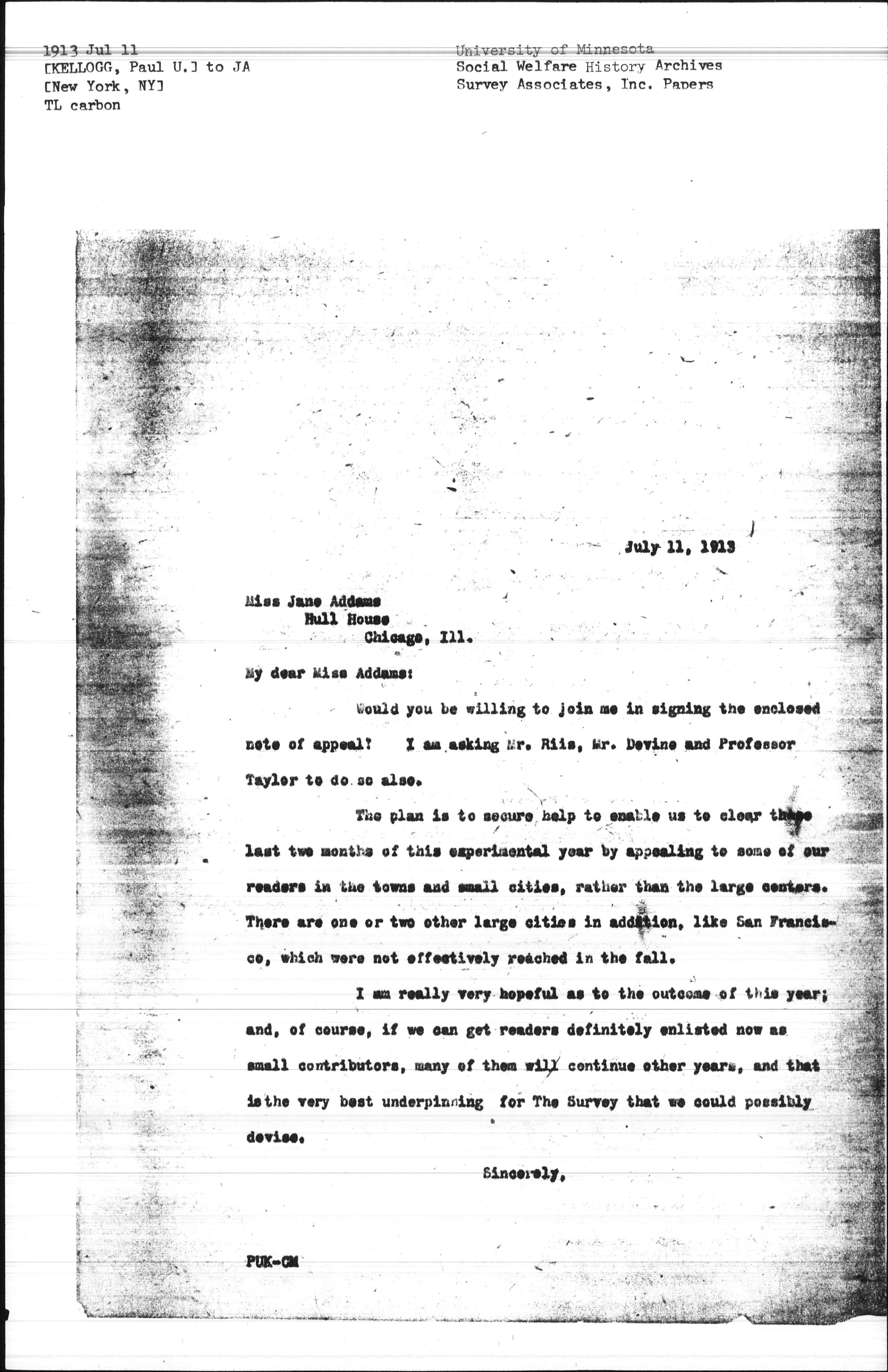I am really very hopeful as to the outcome of this year; and, of course, if we can get readers definitely enlisted now as small contributors, many of them will continue other years, and that is the very best underpinning for The Survey that we could possibly devise.