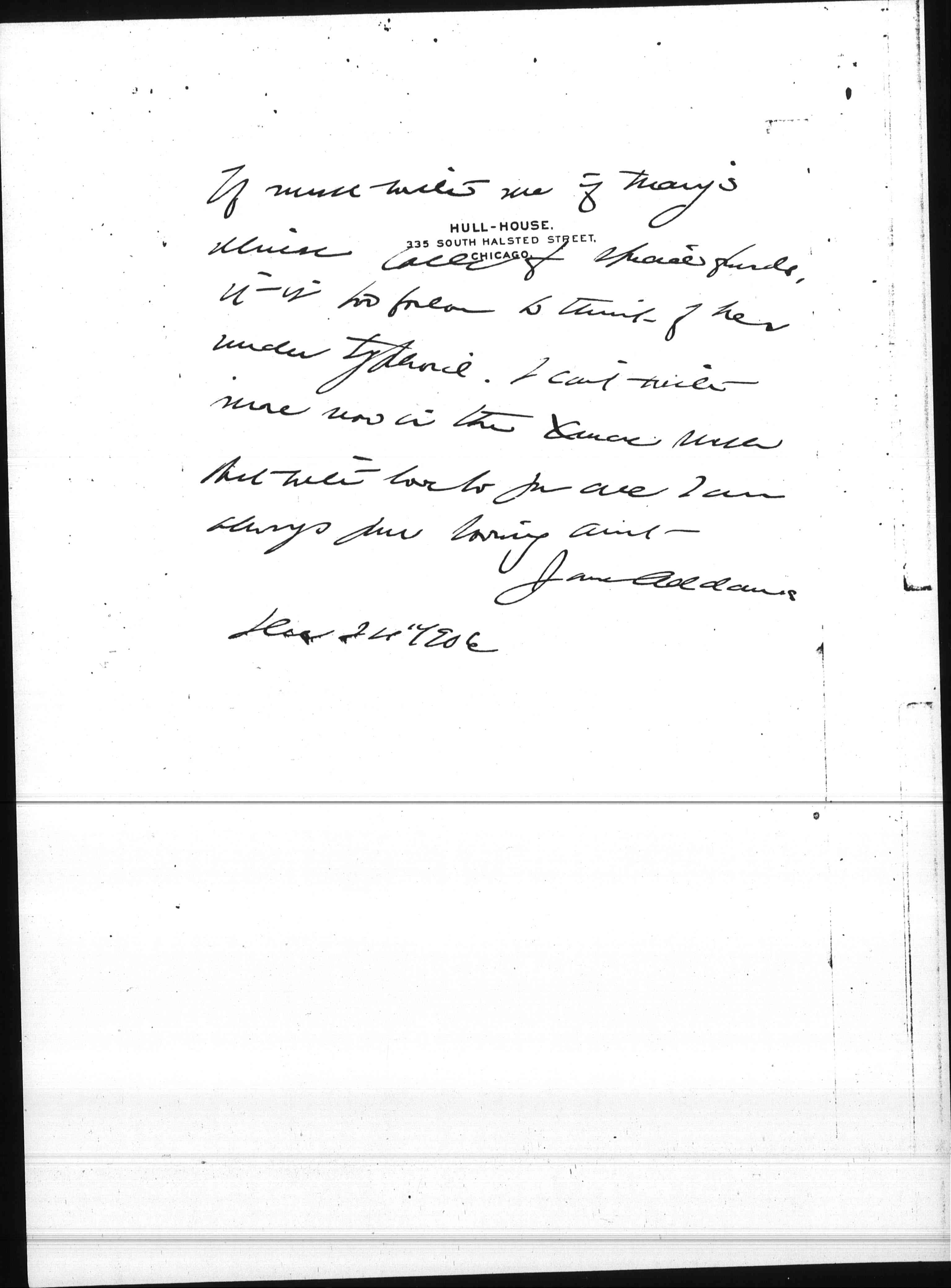 Your letter came this morning and I am afraid that the report I sent about Chicago conditions was too discouraging. Of course the [salary] will be small at first but will come up and I am expecting of course to stand by my offer of helping out. It will be a great pleasure to all of us to have you in Chicago and after all we only go through life once and companionship is a very large part of it. [page 2]