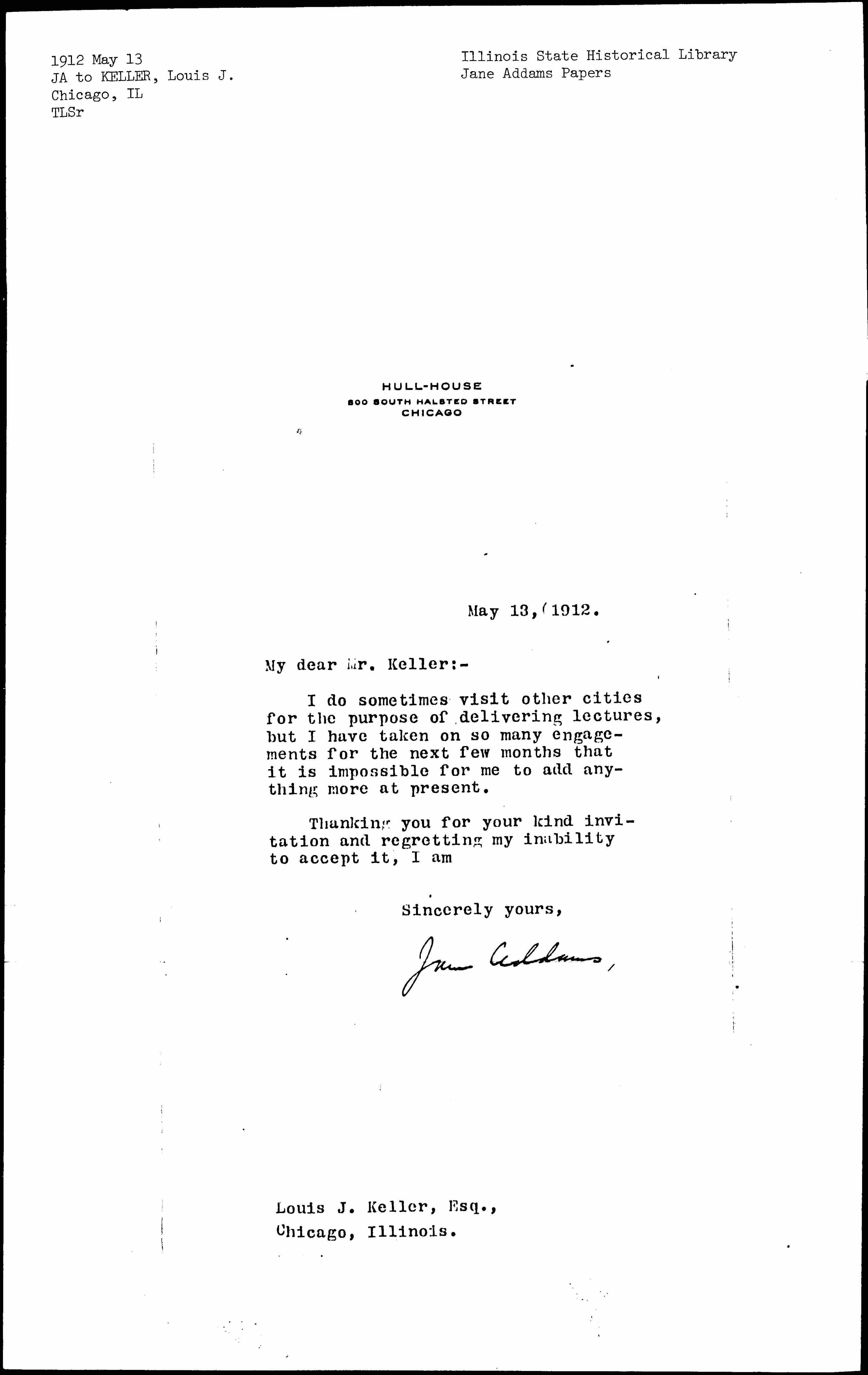 Jane Addams [signed]