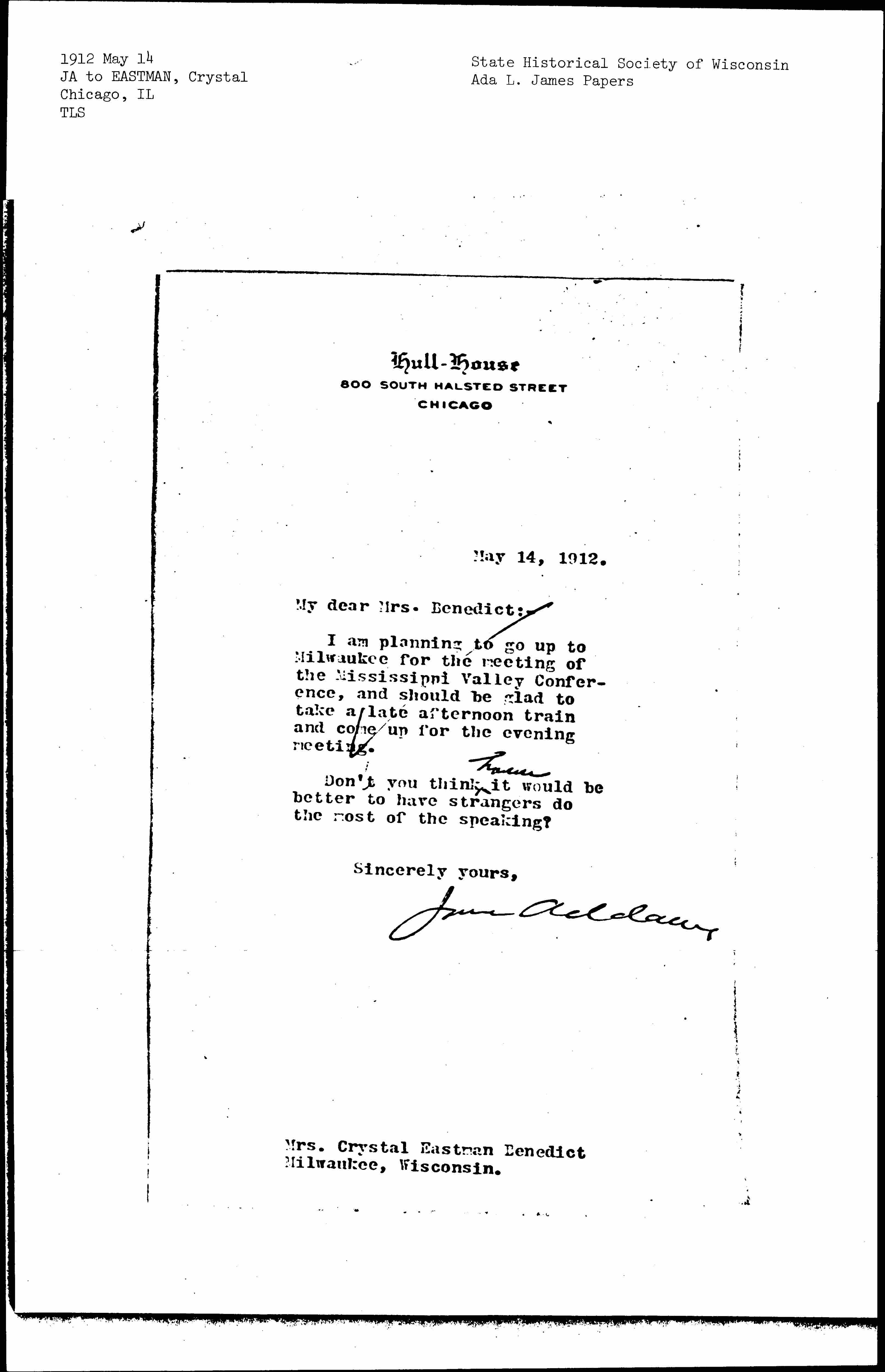 Jane Addams [signed]